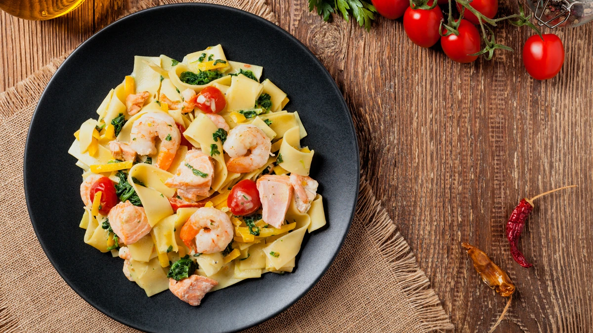 Spenótos tészta, fűszeres rákkal
