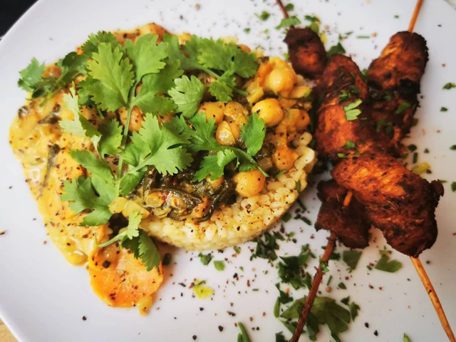 Kókusztejes, kashmíri fűszerezésű Fcsicseriborsó curry csirkenyárrsal 2310 Ft