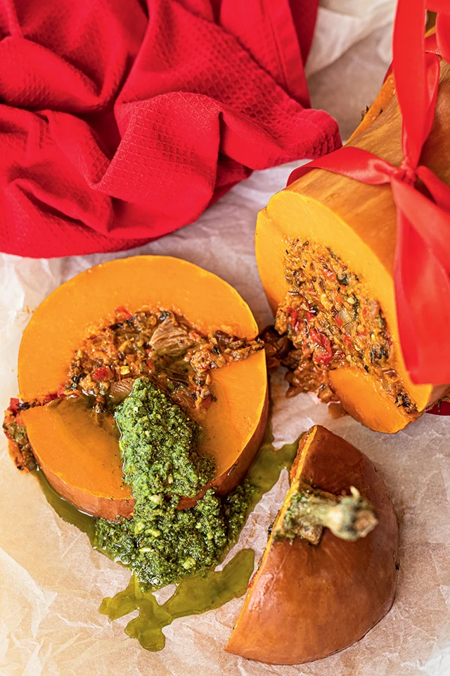 Vega töltött sütőtök karácsonyi csomagolásban, pesztóval