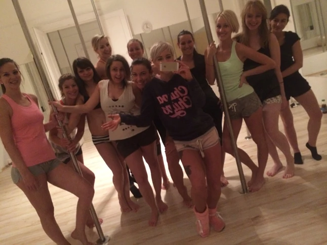 Elérkezett az első közös óránk ideje, na de mi is történik ilyenkor? Ha ti is kacérkodtok a gondolattal, hogy kipróbáljátok ezt a sportot, arra számítsatok, hogy az első pár alkalom igen csak kemény lesz. Nálunk az órák 75 percesek, egy jó alapos bemelegítéssel kezdünk, ami nagyon-nagyon fontos az esetleges sérülések elkerülése végett. Ezután jön a Bea-féle 15 perces kiképzés. Ilyenkor a kedvenc szadi erősítő gyakorlataimat végezzük együtt, mivel fontosnak tartom, hogy óráról-órára fokozatosan készítsük fel testünket, izmainkat az egyre intenzívebb és specifikusabb terhelésre. Ilyenkor igyekszem olyan gyakorlatokkal készülni melyek egyszerre dolgoztatják meg a rudazáshoz szükséges legtöbb izomcsoportot. Mikor ezzel is készen vagyunk, indul maga a törzsóra. Első pár alkalommal elkezdünk ismerkedni a rúddal. Mivel nálam otthon alap bútor a nappali közepén a rúd, Kriszti helyzeti előnyben volt az első órások között annyiban, hogy tenyere érintkezett már a krómmal. A csajok ilyenkor megtapasztalják milyen érzés a rudat fogni, körülötte sétálni, megtanulják a különböző kéz-és lábtartásokat, valamint pár kezdő forgást és pózt is elsajátítanak. Mivel annyira új élmény az egész, általában a lelkesedés és a jó hangulat eltereli a figyelmet a brutál terhelésről, és csak a levezető nyújtás végén szokott realizálódni a lányokban az "atyaégdeelfáradtam" érzése.
