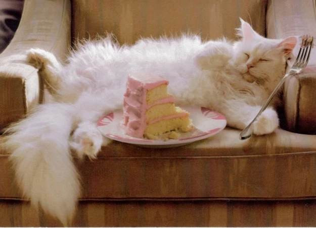 (– Hogy-hogy mi a fenét csinálok? – értetlenkedik a macskám. – Te mondtad, hogy nem szabad félni a szénhidrátoktól. Hát tessék, nemhogy nem félek tőlük, egyenesen magamba fogadom őket teljes finomságukban…)