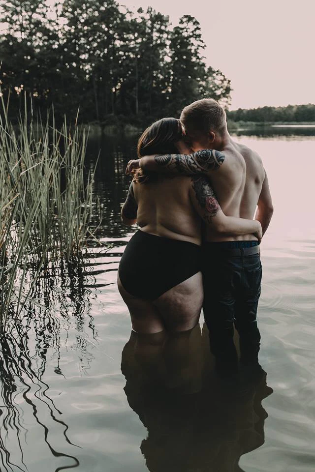 A képeken egy plus-size testalkatú lány és jóval vékonyabb párja láthatóak, ahogy őszinte, igaz szerelmes pillanatokat osztanak meg egymással egy tó partján.