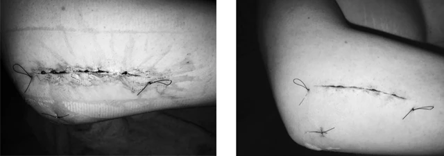 A sebem 1 nappal és 7 nappal a beavatkozás után.