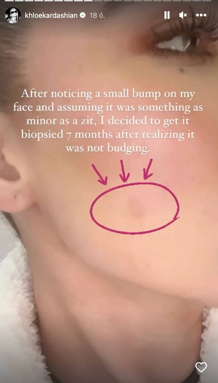 Azért osztja meg a történetét, hogy felhívja a figyelmet a fényvédelemre, a rendszeres önvizsgálatra és arra is, hogy ne hanyagoljuk el az éves szűréseket. Khloé Kardashian ugyanis ennek köszönheti, hogy még időben sikerült eltávolítani az arca bal oldaláról egy daganatot.