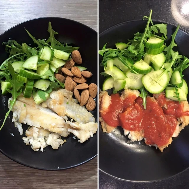* Minden nap egyél meg 2 gramm/testsúly fehérjét, de jobb a 2,5 gramm (70 kg-os testsúlynál ez 140 gramm fehérje minimum). Ezt lehetőleg halból próbáld meg fedezni, (tilapia, tőkehal, tonhal natúr levében, néha lazac) illetve tojásfehérjéből. Ha semmiképp nem megy a halfogyasztás, helyettesítsd pulykamellel, illetve 100% whey proteinnel (laktózérzékenység esetén rizs/tojásfehérje shake is kiváló)