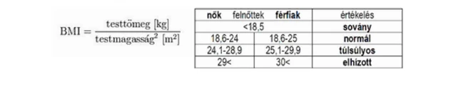 Az ideális testsúly mindenkinél más, mert az nagymértékben függ a testmagasságtól és nemtől, így érdemes kiszámolni a BMI-indexünket is, amit az alábbi képlet segítségével tehetünk meg. Figyeljetek arra, hogy a magasságotokat méterben adjátok meg, és ne centiméterben (tehát nem 160 cm, hanem 1,6 m). Az eredmény akkor megfelelő, ha az érték 18,5-25 közé esik.