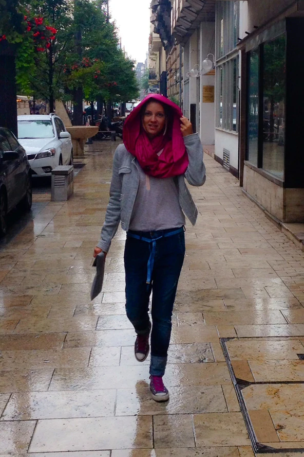 Ilyen esős időben legszívesebben egész nap az ágyban lustálkodtam volna, de dolgozni, haladni muszáj, így gyorsan belebújtam egy kényelmes farmerbe és laza kiskabátba, az elengedhetetlen tornacipővel. Na és persze a BodiEs multisálamat sem hagytam otthon, ami most nagyon praktikus kiegészítőd lehet, mivel sálból bármikor kapucnivá alakíthatod és vízálló tulajdonságának köszönhetően nem kell aggódnod a frizurád miatt sem. :)