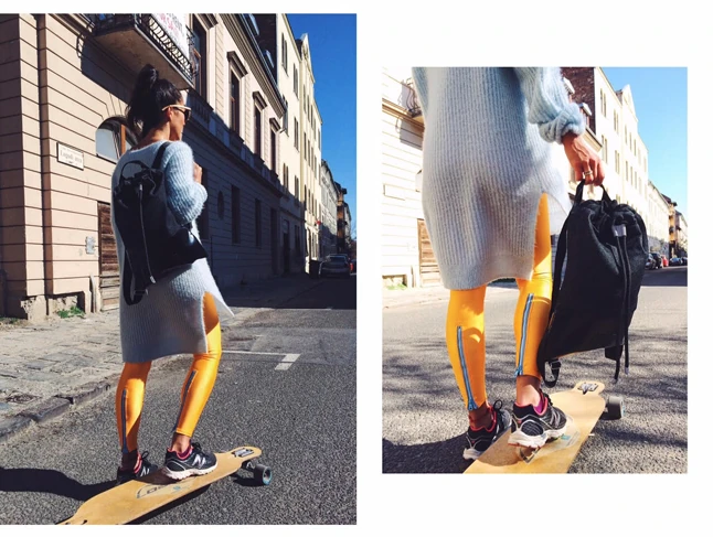 Ma nehéz dolgom van, mert munkaszüneti nap lévén egész nap itthon dolgozom, köntösben ülök a laptopom előtt és a hamarosan induló webshopot szerkesztem. A kedvetekért persze nyilván felöltözöm, végülis egészen az utca végéig el kell mennem családi ebédre. Így a mai jelszó: kényelmes és laza. (Nem mintha bármikor is a kényelmetlen lenne a nap jelszava.) Nevezhetném "játszósnak": egy leggings a nagyon sokból, a világ legkényelmesebb futócipője és hatalmas oversize pulcsi, ami valójában csak azért az, mert 12 mérettel nagyobb, mint én. Táska nélkül persze nem szett a szett, az idő pedig brutál csoda, úgyhogy előkaptam a longim! És már suhanok is...