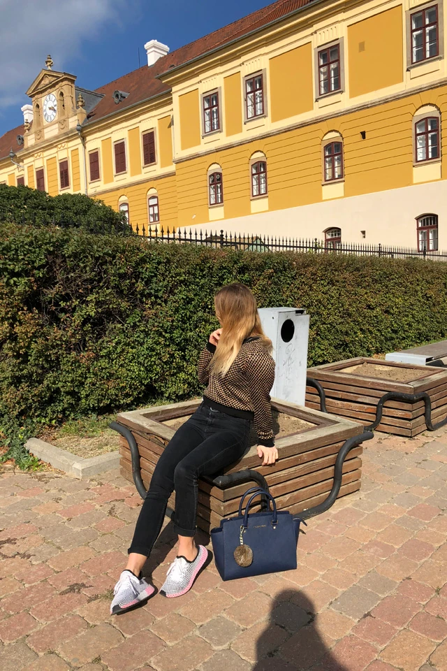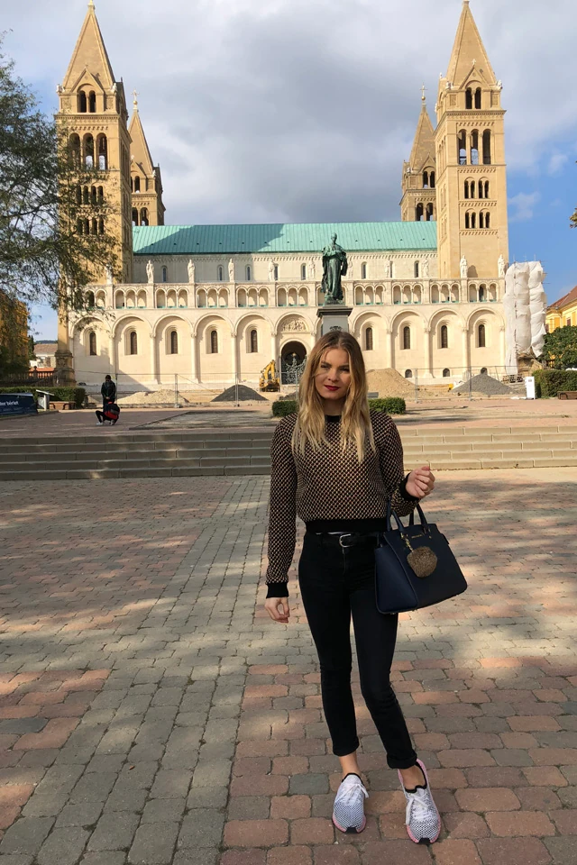A héten még csak reggelente van edzésem, így kicsit még élvezhetem a szünetet. Ma a húgommal voltam Pécsen kicsit nosztalgiázni, mert utoljára 10 éve jártam Pécs ezen részén. Tudtam, hogy sokat fogunk sétálni, és éreztem, hogy fúj a szél, ezért felvettem a jelenlegi kedvenc pulcsimat egy nagyon kényelmes cipővel.