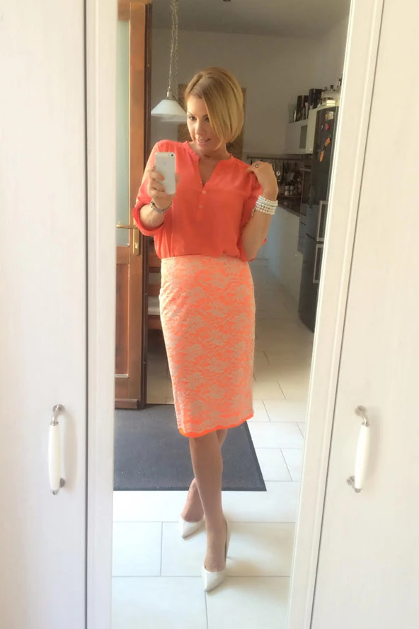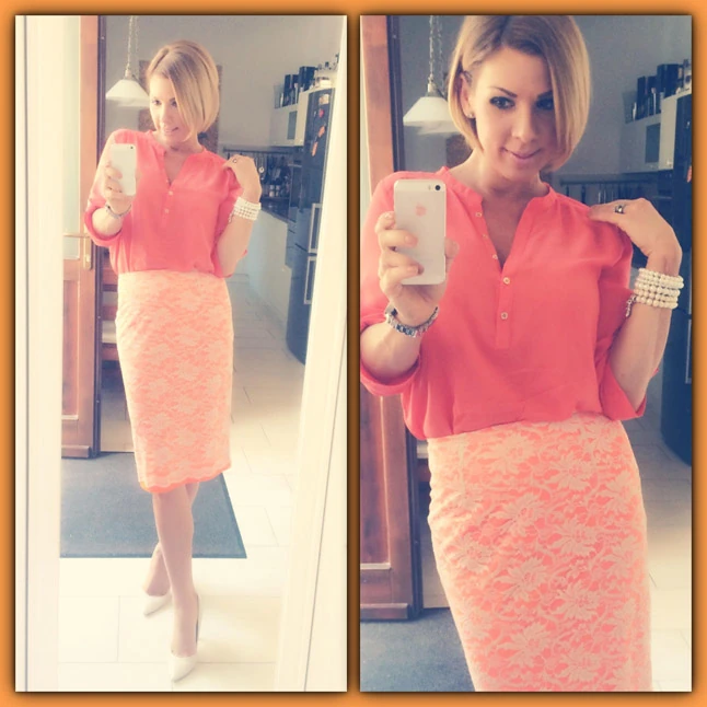 Régebben egyáltalán nem hordtam narancs színeket, de amióta sötétebb szőkére váltottam, kifejezetten kedvelem.