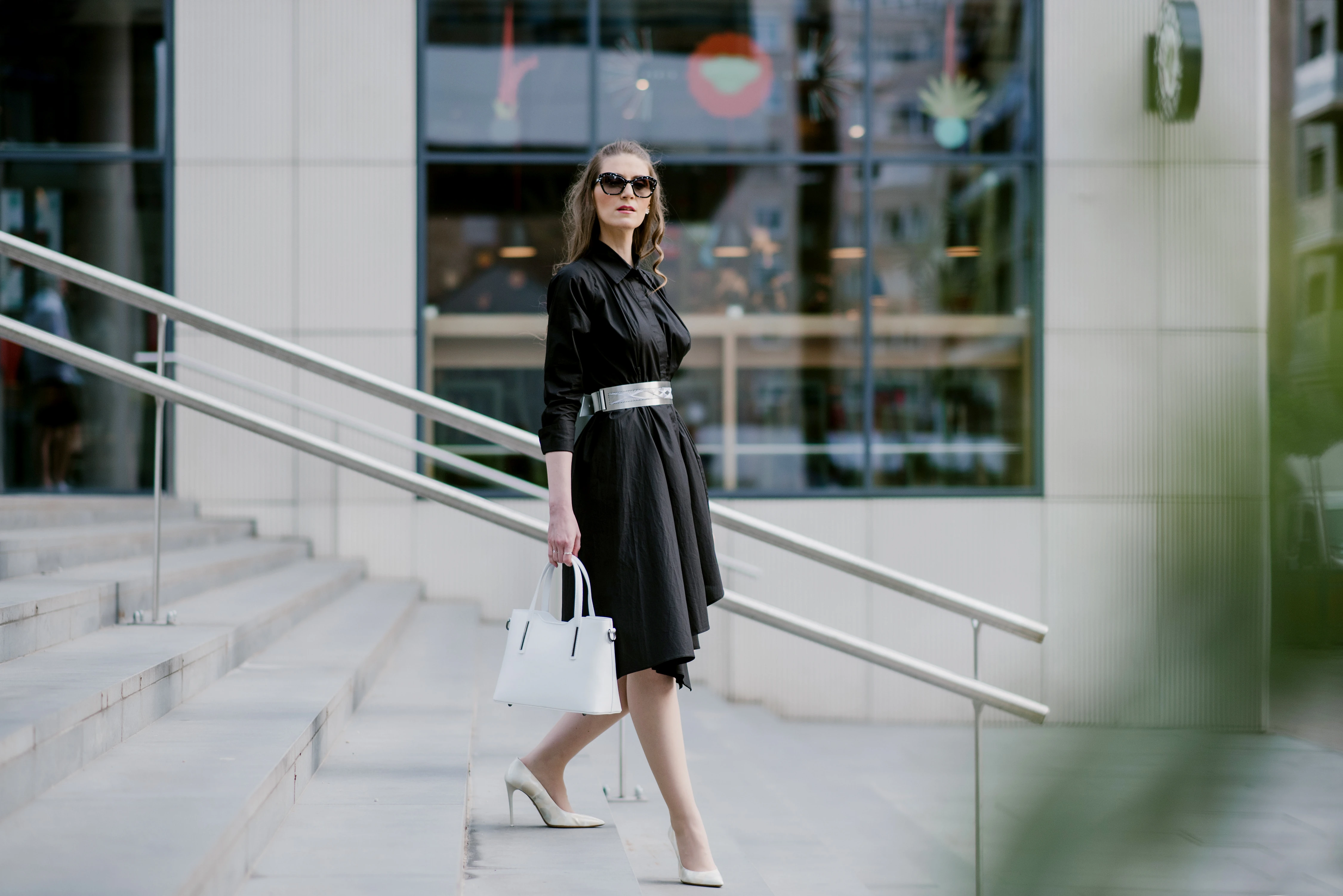 A fekete-fehér szettek valójában bárhová felvihetőek, mindössze annyit kell tenni, hogy ezeket a klasszikus árnyalatokat modern módon értelmezd. Ma egy ezüst övet választottam, hogy derékvonalam kiemeljem, egy szuper csillag mintás napszemüveget amit egy fehér táskával és cipővel párostíottam.