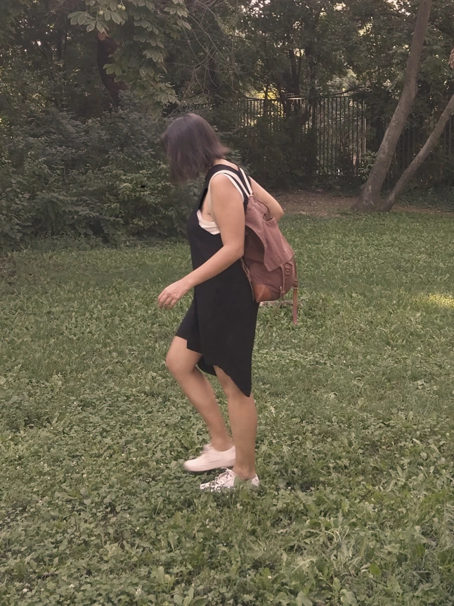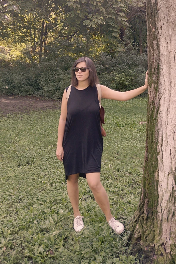 A kánikulában az egyik kedvenc ruhám ez a kis fekete. Elöl rövidebb, hátul hosszabb, szép az esése és nagyon kényelmes. A hátizsákot pedig télen-nyáron imádom: a USE bag egyik szuperpraktikus darabja.
