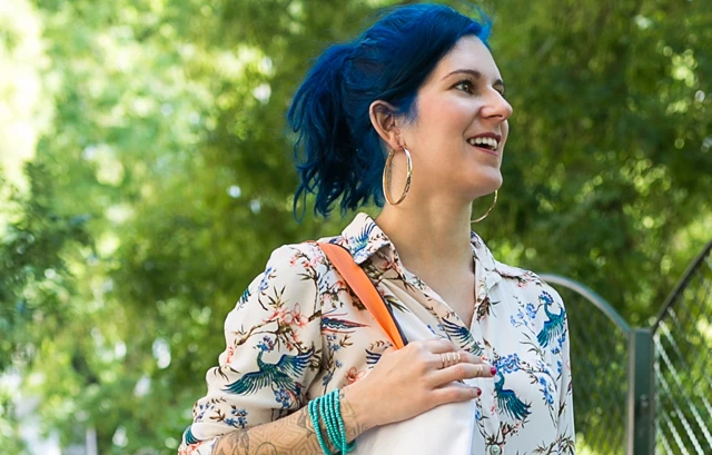 Nem véletlen, hisz a kékhajú tervező személyét és különleges táskáit könnyű megjegyezni. Innovatív anyaghasználat és időtlen formavilág jellemzi őket. Legújabb projektje az Önbizalom táska, a DOVE márkával karöltve született meg. Alma szereti az egyszerűbb, letisztultabb ruhákat, hogy egyedi és extravagáns kiegészítőkkel kombinálhassa őket, amiket meg is mutat nekünk.