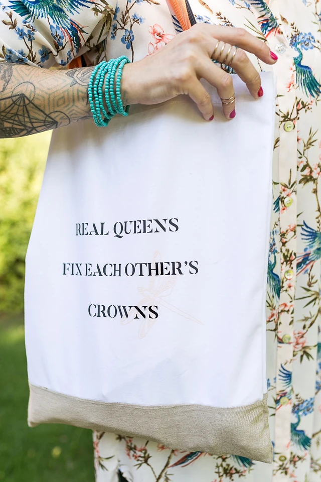 Annyira szeretem az őszt (és a tavaszt), szerintem ilyenkor lehet a legjobban játszani az öltözködésünkkel. Ma egy lenge, de hosszúujjú ingruha dominálja a szettemet és számomra nagyon izgalmas érzés, hogy nem saját táskával indultam el. Amióta táskákat készítek, csak a saját táskáimat hordom, mert mindig van rajtuk mit tesztelni, kipróbálni, meg csak úgy, egyáltalán. Ám, amikor megláttam pár hónapja a ViktoriaVarga Elysian együttműködéséből született darabot, azonnal beleszerettem. Megfogott a filozofiája, mert én is pont ezt vallom: Real Queens Fix Each Other`s Crowns! (Az igazi királynők megigazítják egymás koronáját!)