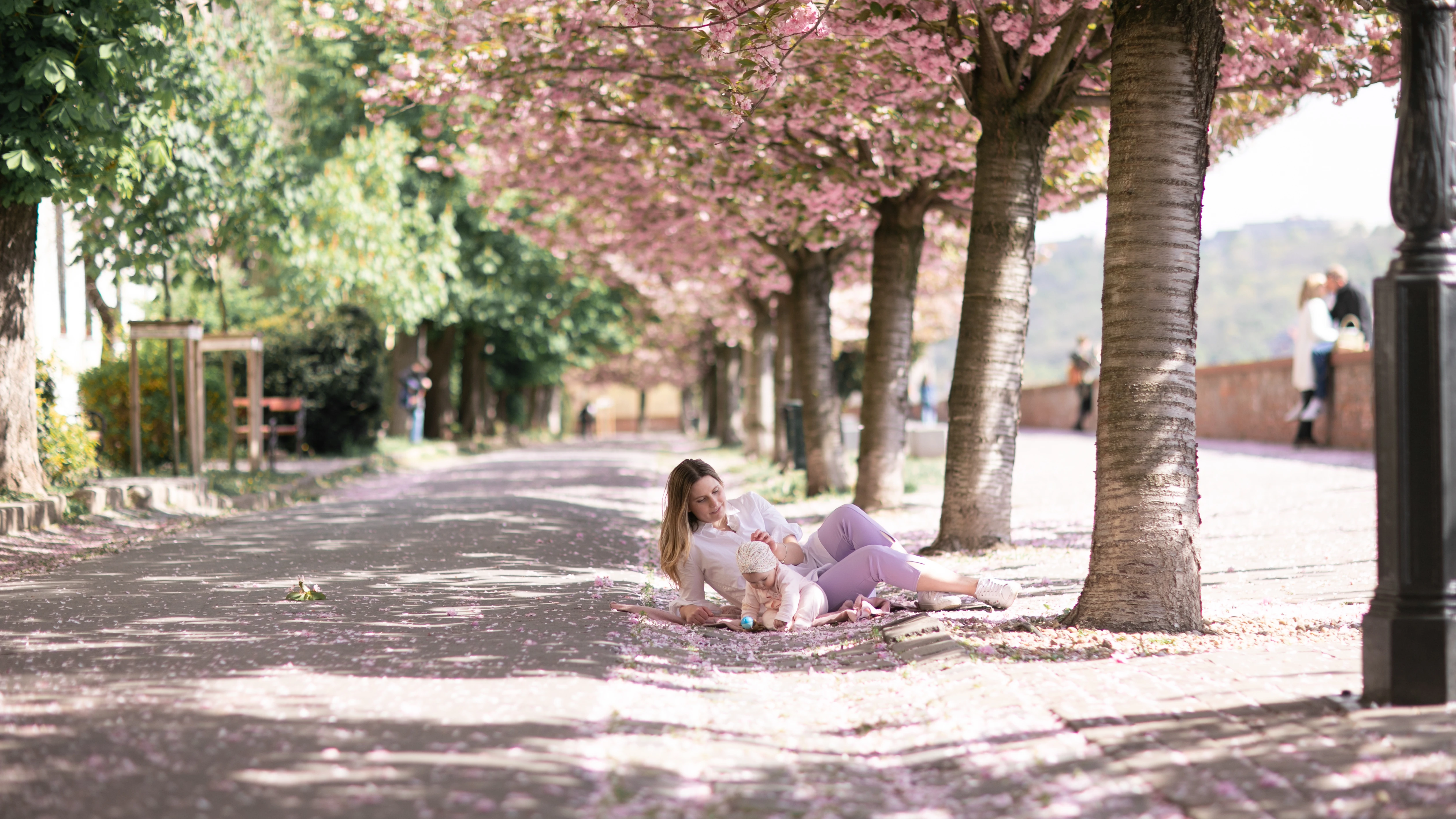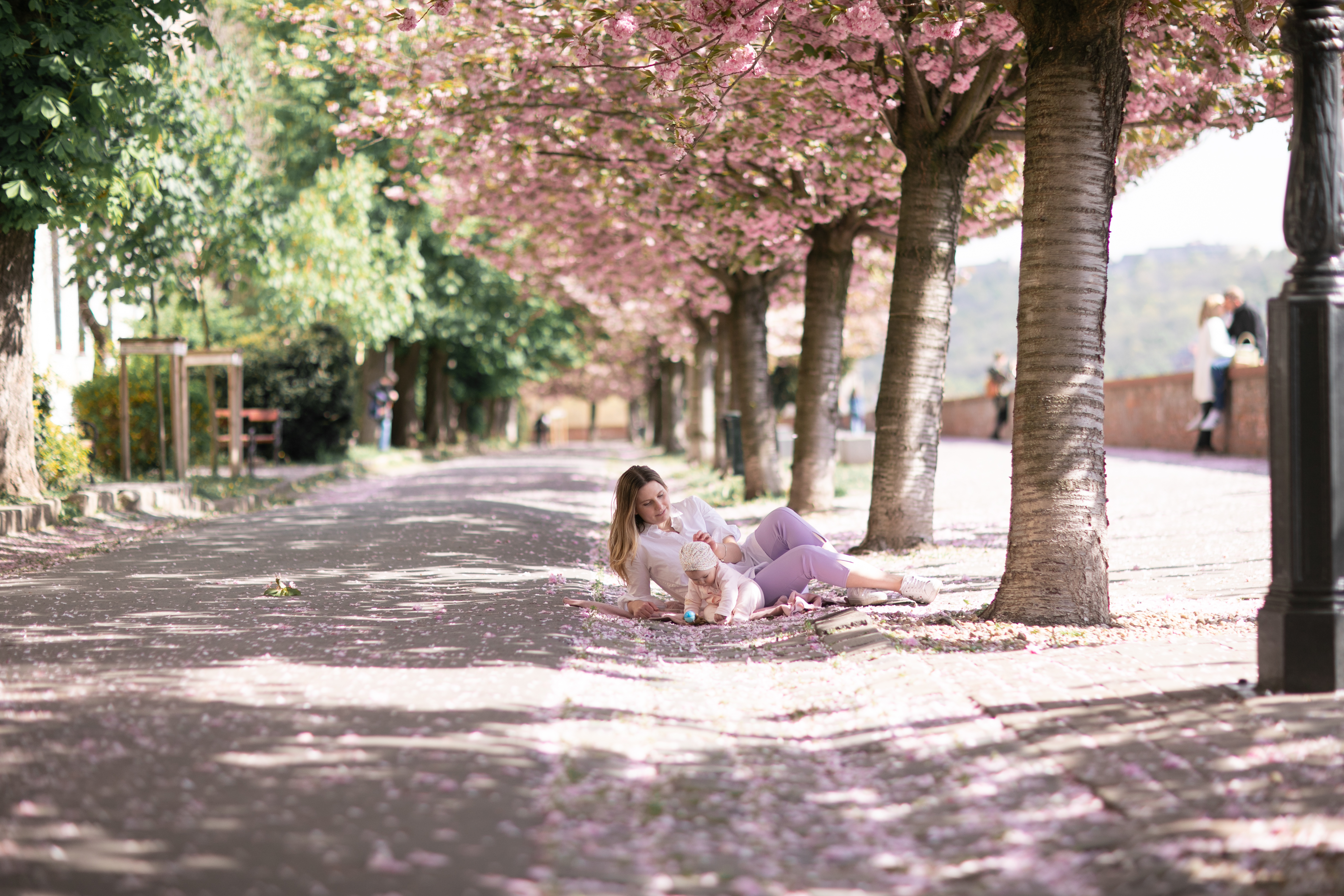 Ezen a szép napsütéses napon, jó piknikezni a cseresznyefák alatt.