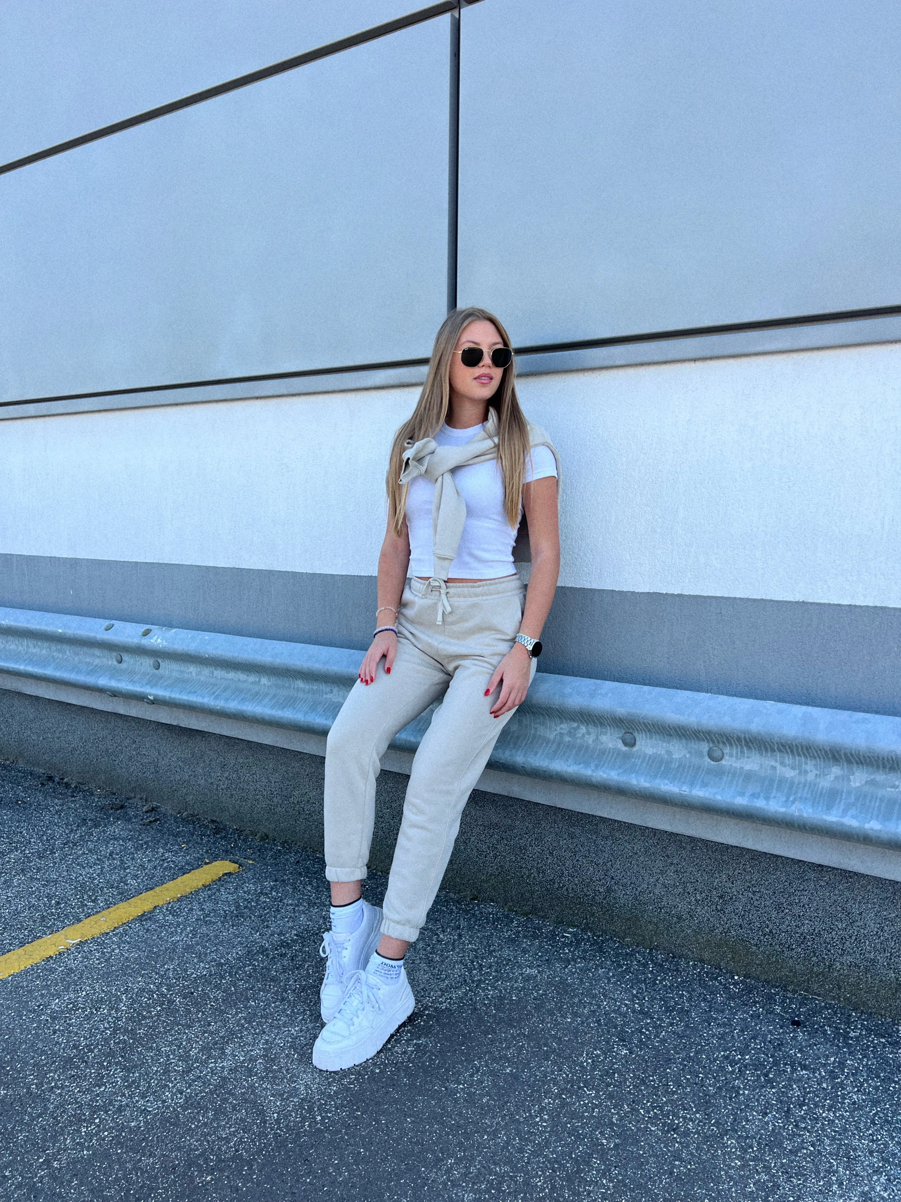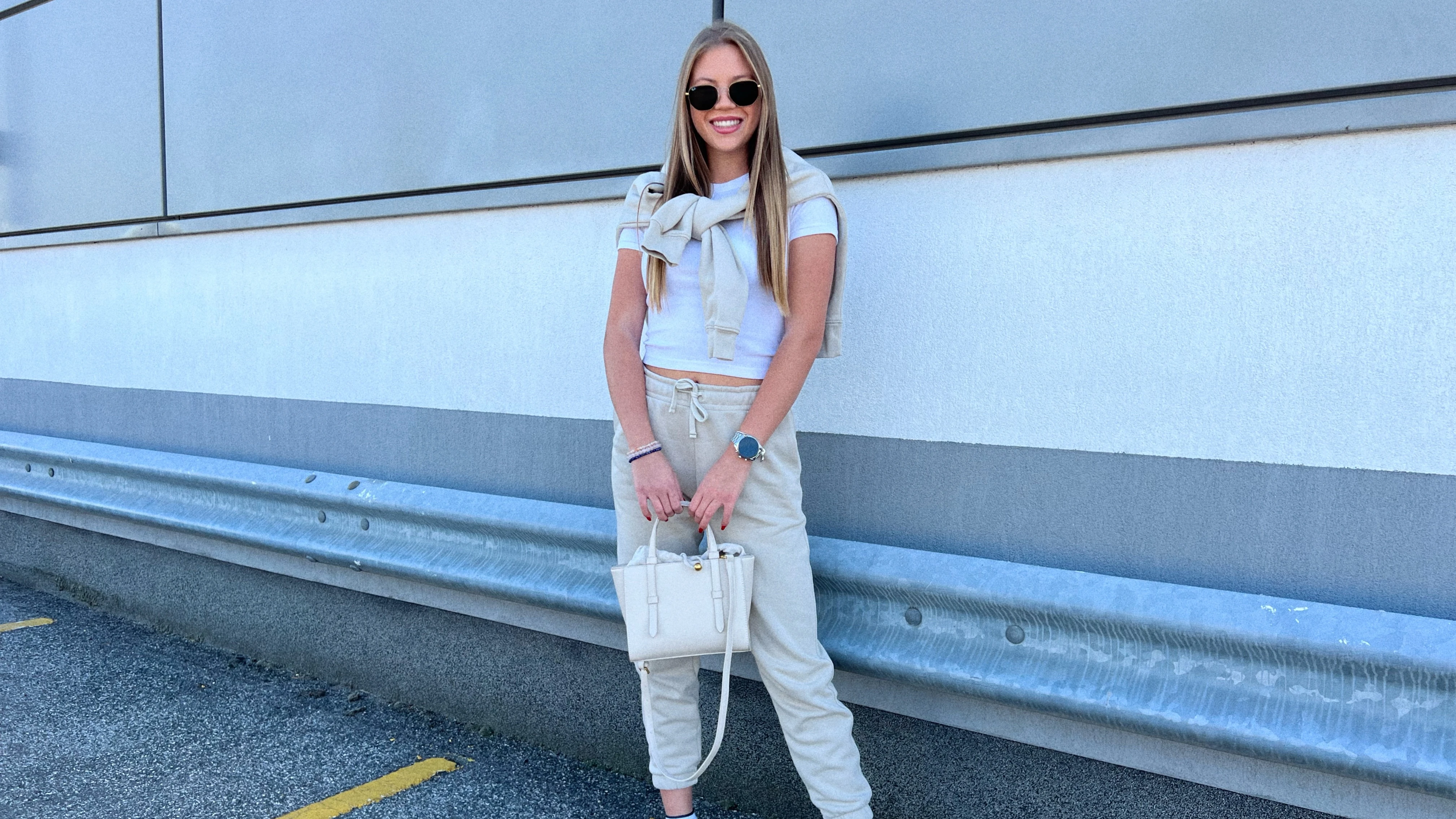 "Nagyon szeretem a melegítőszetteket, sokszor a kényelemre törekszem. Így péntekre ezt a bézs melegítőt választottam."