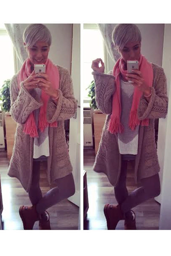 Mivel nekem a hétfő a szabadnapom, ilyenkorra iktatom be a "rohangálós, ügyintézős" programjaimat. Ilyenkor szeretek kényelmesen, rétegesen felöltözni. Imádom a hosszú, kötött kardigánokat, szinte egy szekrénnyi van belőlük :) Mivel csalóka időt mondtak, csizmivel és sállal kombináltam.