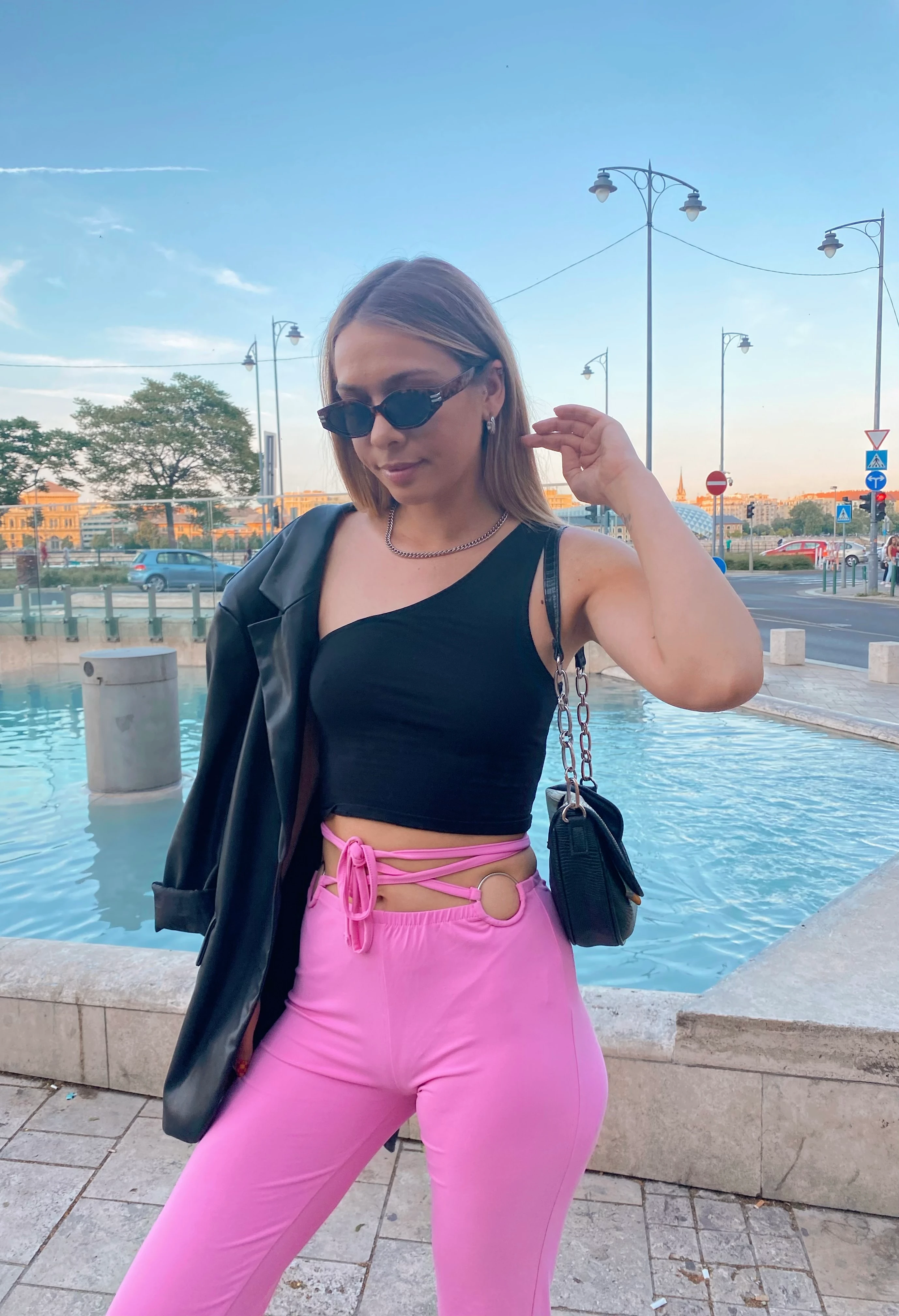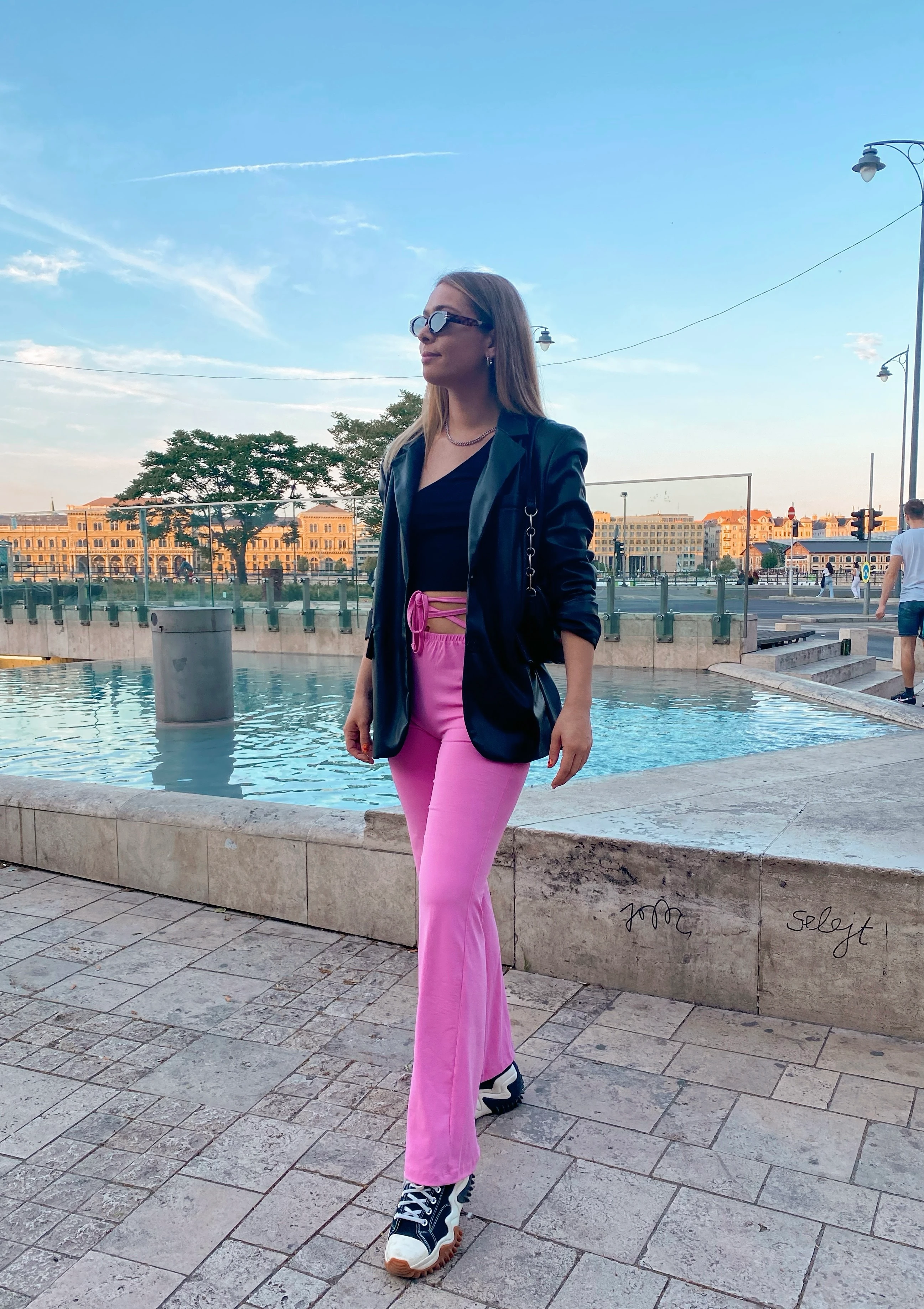 Ismét csodás időnk van ma, ezért el is mentem egy kis városnézésre a legjobb barátnőmmel. Bár Budapesten születtem és itt is élek, mindig újra és újra elvarázsol a város szépsége és imádok “turistáskodni” benne. Ma egy kényelmes, de annál extrémebb szettet választottam ehhez a programhoz: a rózsaszín nadrág az egyik kedvencem a gardróbomból jelenleg, leginkább a különleges részletei miatt.
