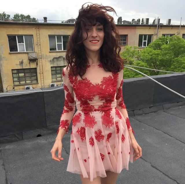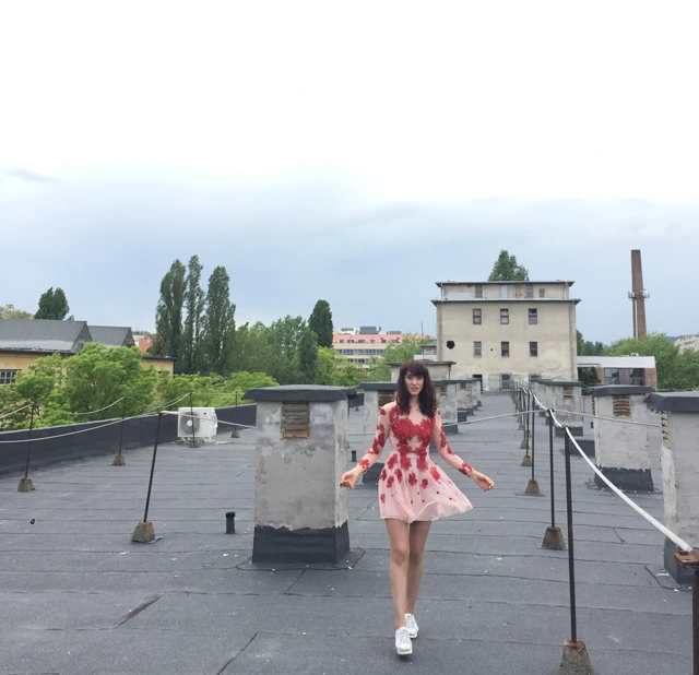 Végül nem gondoltam volna, hogy innen indulok el, de így történt. Próba után Hátsósorral ( a zenekarból Toldi Miklós , Fodor Máriusz és én) meglátogattuk a ház tetejét. Fellépőruhában vagyok, Sármán Nóra kreációja, nagyon szeretem a ruháit,rendkívül inspirál a színpadon és szépnek, rejtélyesnek láttat.