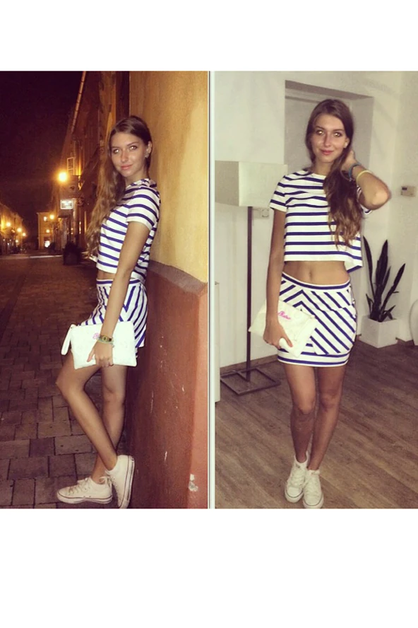 Ez a Zara szett az egyik kedvencem. Én általában este, bulikban szoktam viselni, de akár napközben is felvehető. Feltűnő, de mégsem kihívó. Idén kifejezetten divat a hasvillantás. Mivel a csíkos minta eléggé behatárolja a kiegészítőket, ezért csak nagyon egyszerű, fehér cipőt és egy fehér táskát választottam hozzá.:)