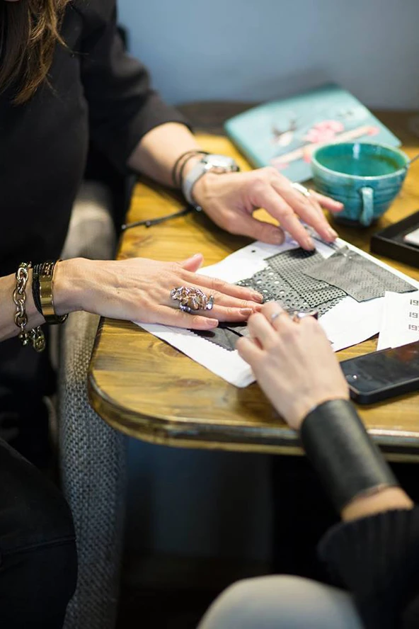 A délelőtt folyamán a teljes nagy kollekciónk darabjait szelektáltuk; mik kerülhetnek az amerikai, mik az europai listákra, majd a délután folyamán beérkeztek az új anyagmintáink is, amik között szemezgettünk; miket tudunk használni a jövőben.