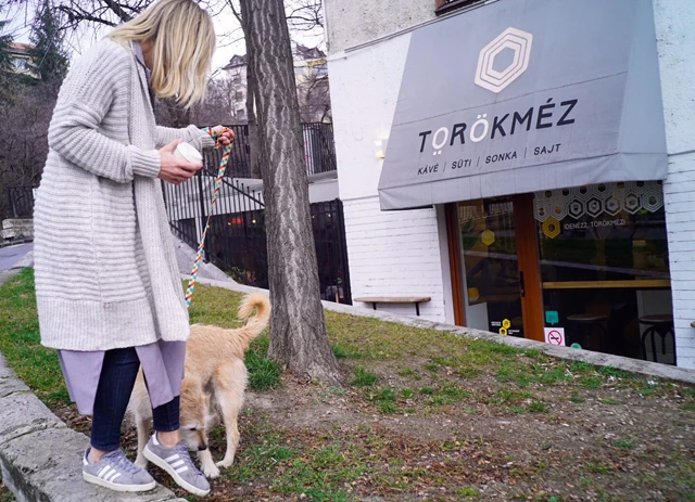 Cakó Kinga kedvenc kávézójában kezdte a napot kutyusával