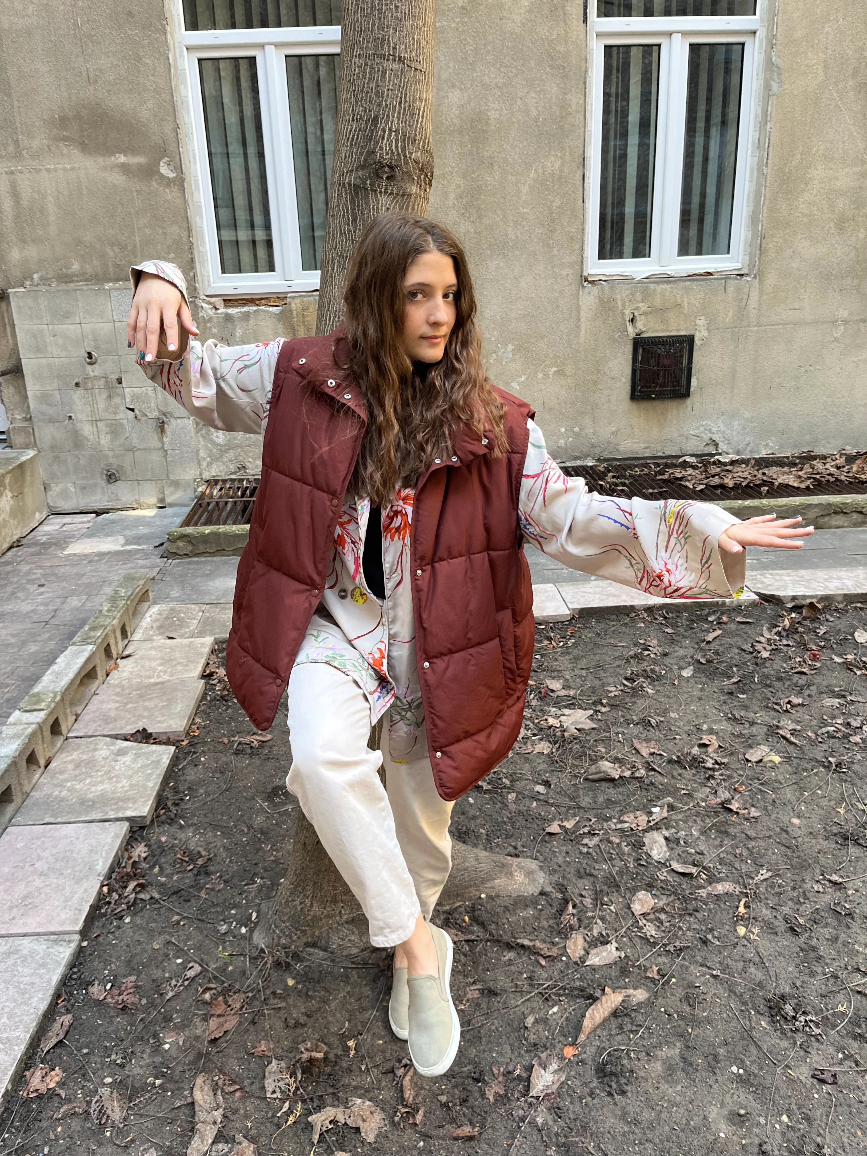 „Ilyen mellényt szeretnék hordani majd, amikor természetközeli kertészasszony leszek, aki a saját veteményesét gondozza, és hálát ad reggelente a Napnak, ha süt, vagy az esőnek, ha esik, majd beleharap a frissen leszedett uborkájába, amitől egyből kicsordul a könnye, aztán az ideje hátralévő részét permanens boldogsággal tölti, mert annál nincs számára jobb program. Jó úton járok, hiszen a mellény már megvan.”