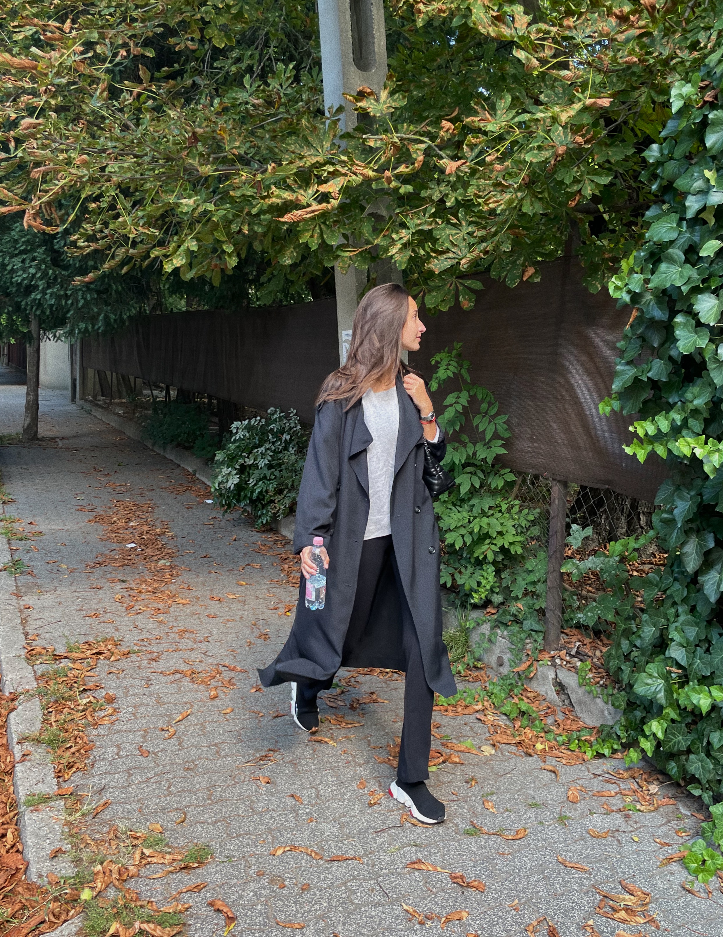A mai napomat egy pilates órával kezdtem, utána pedig bevásároltam és pár elhalasztott feladatott intéztem el. Ennek megfelelően egy fekete bő szárú leggingset választottam ami a sport teremben de a mindennapokban is tökéletesen ,megállja a helyét. A sport melltartóm fölé pedig ezt a szürke kasmír pulóvert választottam, imádom a puha pulóvereket amint kicsit lehűl a levegő rögtön előveszem őket. A szekrényemben mindenképp egy kulcsfontosságú darabnak mondanám. Kabátnak pedig ezt a fekete trench coatot viseltem.