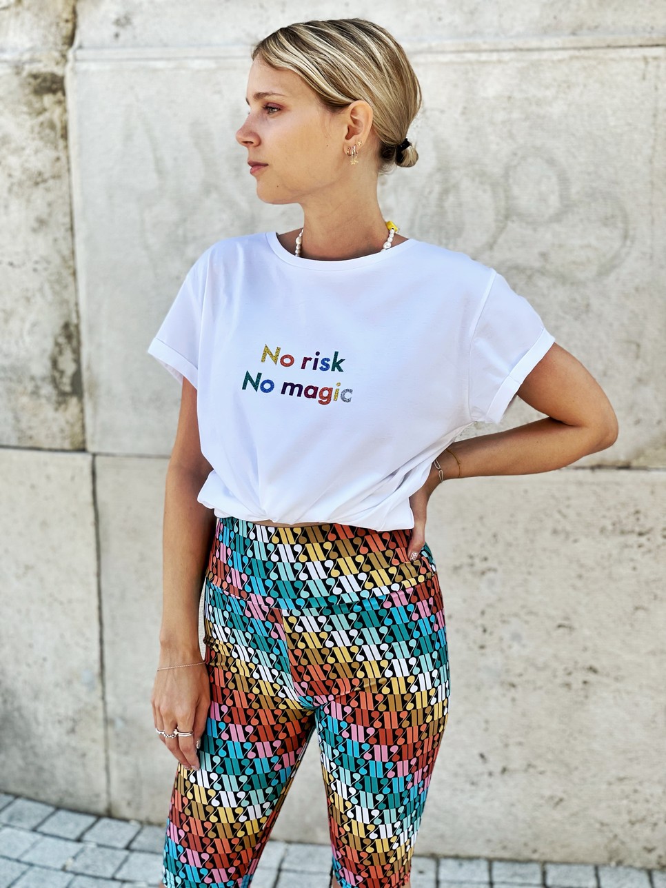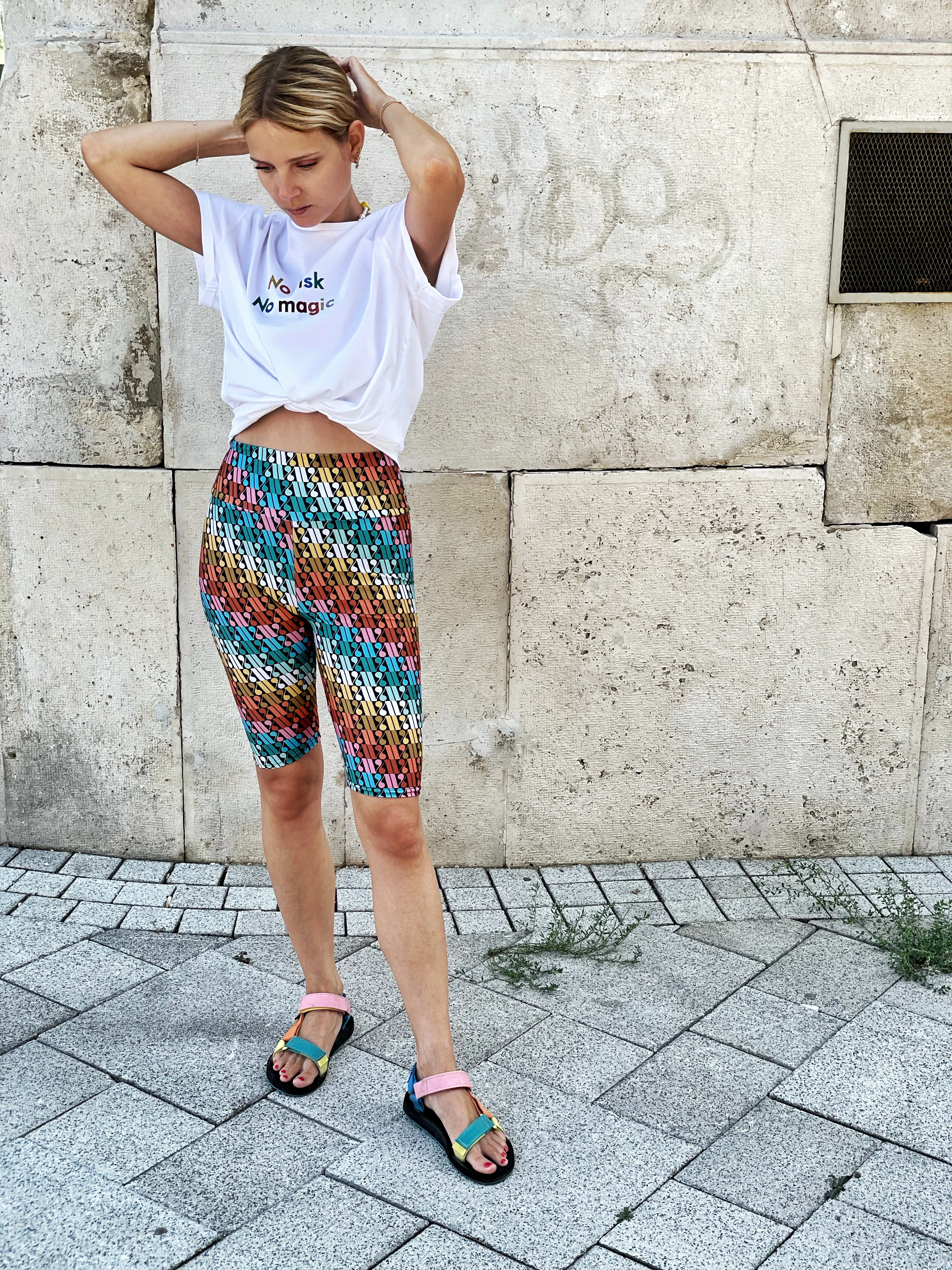 Egy hosszú, csodálatos görög nyaralást egy szuper lánybúcsú követett, így a mai napon az energiaszintem nem az eget verdesi, így mindenképpen valami nagyon egyszerű és kényelmes szettre vágytam. Teszt viselésre felvettem az őszi kollekció logós biciklisnadrágját egy bő No risk, no magic feliratú pólóval, aminél többre ma nem is lesz szükségem."