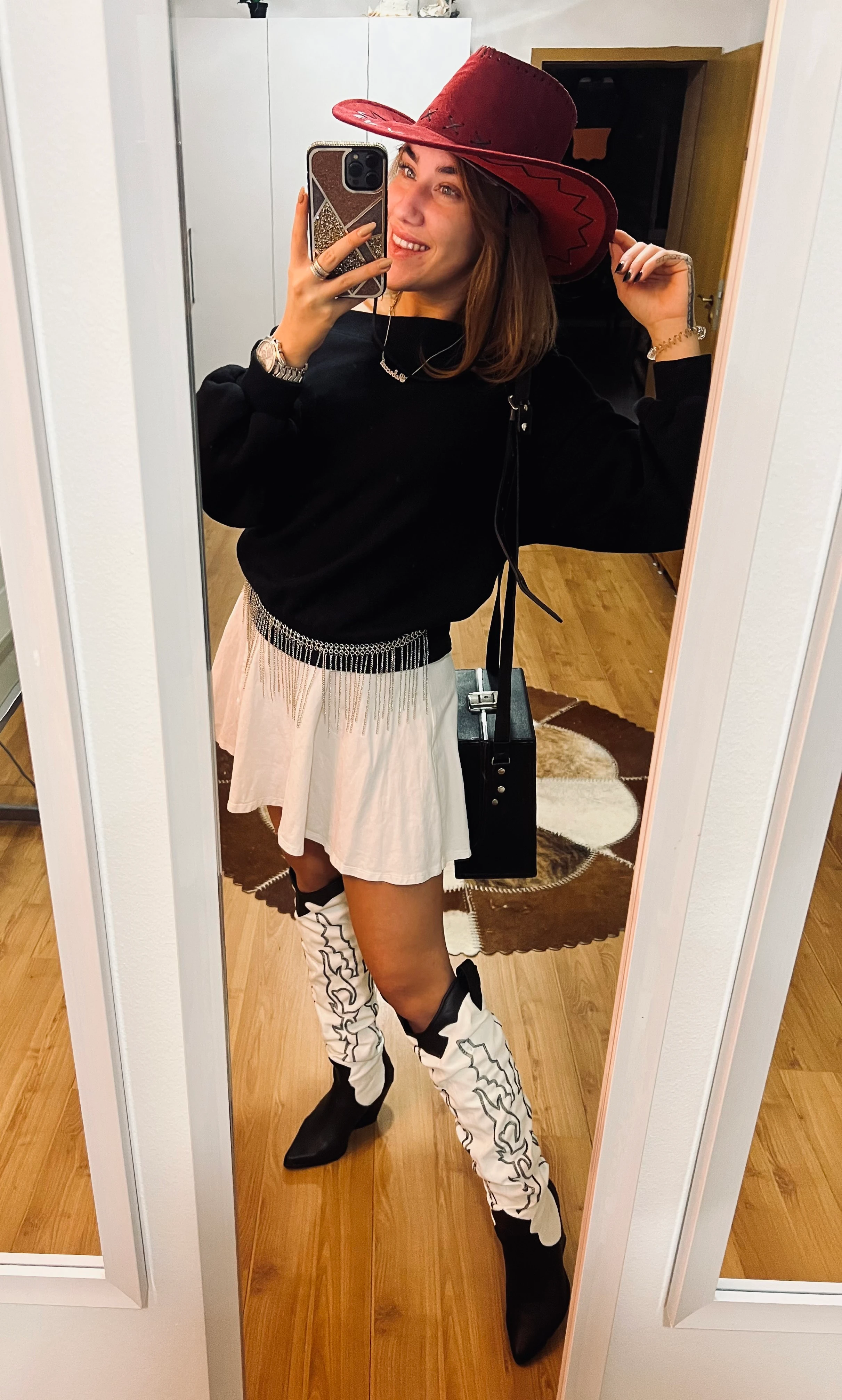 Ma szoknyás napom van. A videóklippem forgatására szeretnék varratni egy Sissi korabeli abroncsos szoknyát, és annak az anyag beszerzése miatt rohangáltam a városban délután. Színekben, hagyományosabb formákban teljesen rendbontó a pénteki szettem. A fehér ruha egy nyári kis ruha, aminek nagyon szeretem az anyagát, mindenképp szerettem volna beilleszteni a téli gardróbomba is. Azt hiszem, sikerült.