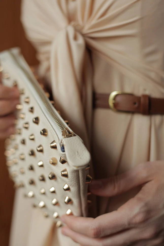 A USE csapatát régóta kedvelem, mert mindig is tudták, mi áll igazán jól az embernek. Ezt a ruhát is ők mutatták be nekem egy alkalommal, mikor csak röpke látogatást terveztem belvárosi üzletükben, egyszerűen nem tudtam ott hagyni. Férjem szerint igazi tündérruha, röpke, légies, elegáns, letisztult és finom. A természetes bőr és az arany illik hozzá leginkább szerintem, ezért, hogy a pasztell-világot ne zavarjuk meg, egy egyszerű övet, és egy kicsit funky táskát választottam kiegészítőnek, így feldobva kicsit az amúgy nem túl merész kombinációt. Egy esküvőn vendégként ideális viselet, mert bár csodaszép, nem fogja túldíszíteni sem a menyasszonyt sem koszorúslányait.