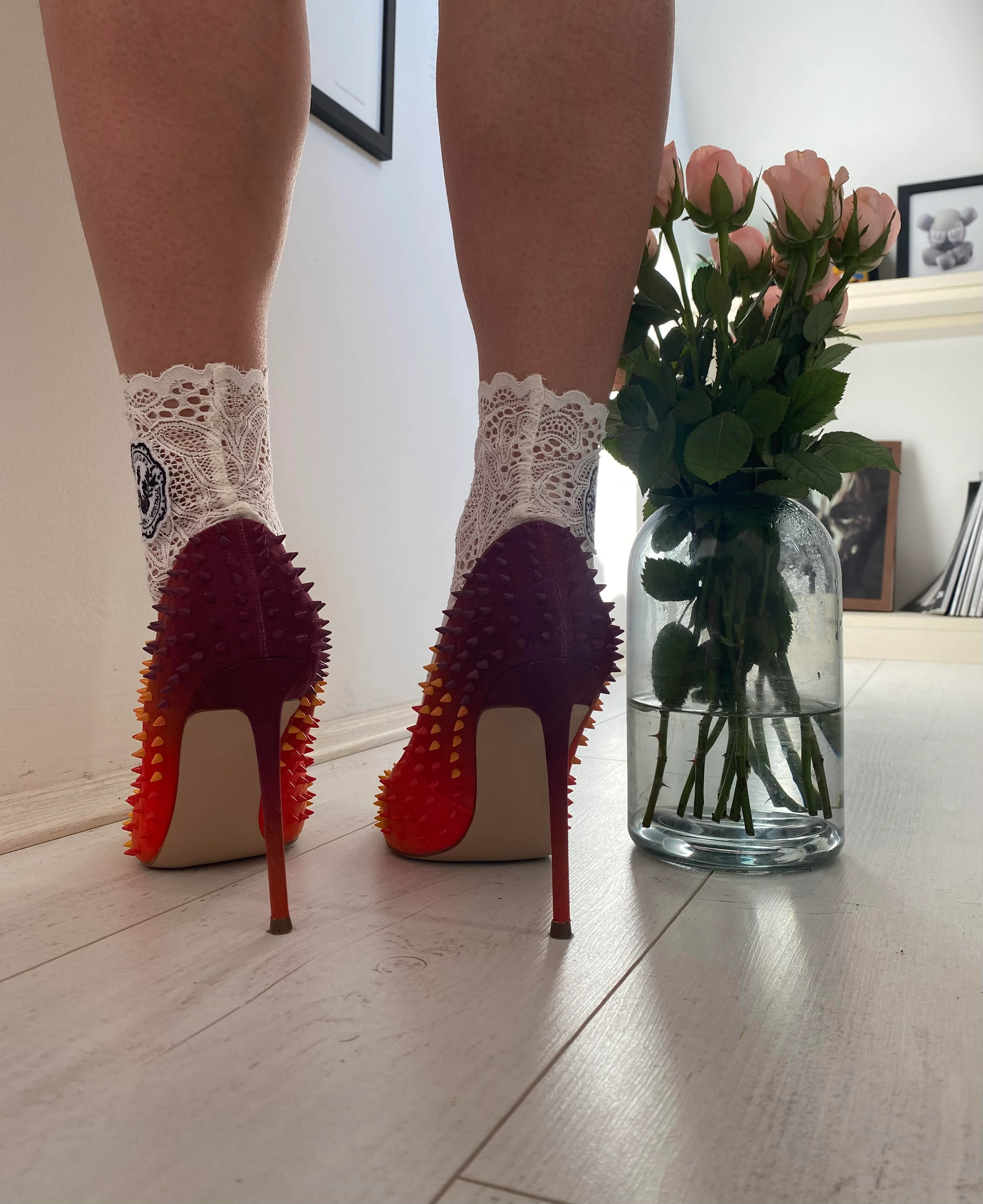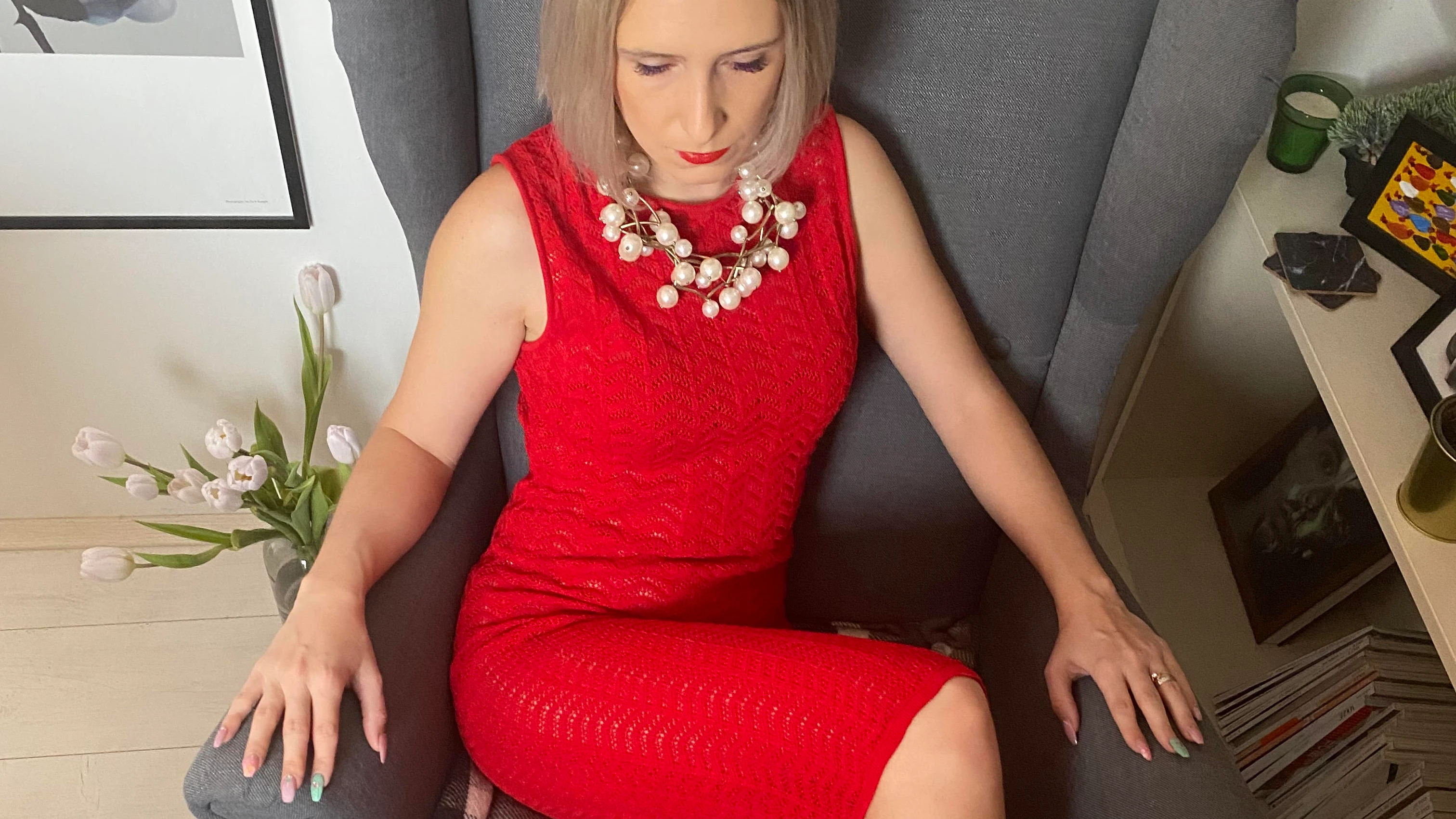 Petra horgolt piros ruhában és romantikus csipkezokniban ünnepli nőnapot!