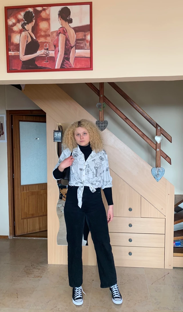 A péntek délelőttöt a családomnál indítom. Anya-lánya napot tartunk, együtt ebédelünk és elmegyünk sétálni valamerre, este pedig egy szűkkörű szülinapi buliba megyek. A mai napon egy fekete garbóra vettem fel egy fehér inget a derekamnál megkötve, amihez a klasszikus trapéz fekete nadrágomat választottam. A szettet kis fekete kézitáskával, Converse cipővel és ezüst színű karikafülbevalókkal egészítettem ki.