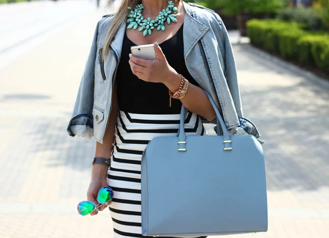 Imádom az egyszerű, sokféleképpen kombinálható alapdarabokat. A gardróbom nagy része olyan basic ruhadarabokból áll, mint a képen is látható egyszínű top, farmerkabát vagy klasszikus magas sarkú cipő. A blogunkon bemutatott összeállítások is többnyire egyszerűek, valljuk, hogy érdemes örökdarabokra építeni, s ezeket az aktuális trendeknek megfelelő kiegészítőkkel különlegessé tenni. Így ma egy mentazöld virágos látványos nyakékkel fűszereztem az aktuális szettemet.