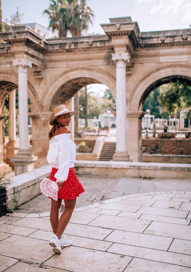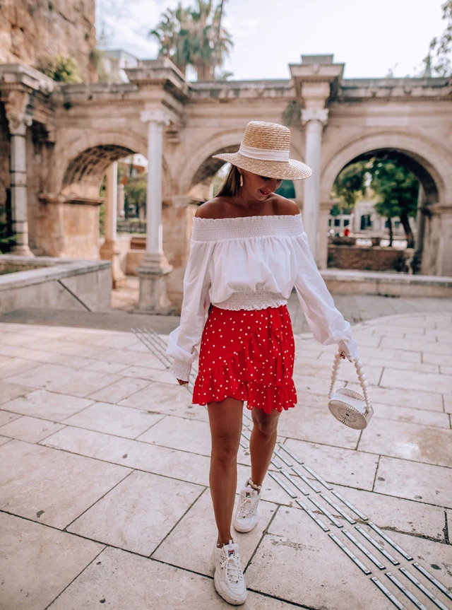 Egy kis városnézés minden nyaralás szerves részét képezi. Ilyenkor kizárólag kényelmes cipőt húzok, hogy bírjam a menetet. Mivel idén ezerrel hódítanak az "ugly sneaker"-ek, azaz ronda sportcipők, így én sem maradtam ki a szórásból, nekem is be kellett szereznem egyet, és milyen jól jártam vele. Ez a példány pehelykönnyű. A kötelező pöttyök most sem maradhattak el és végre megsétáltattam szerelem táskámat is.