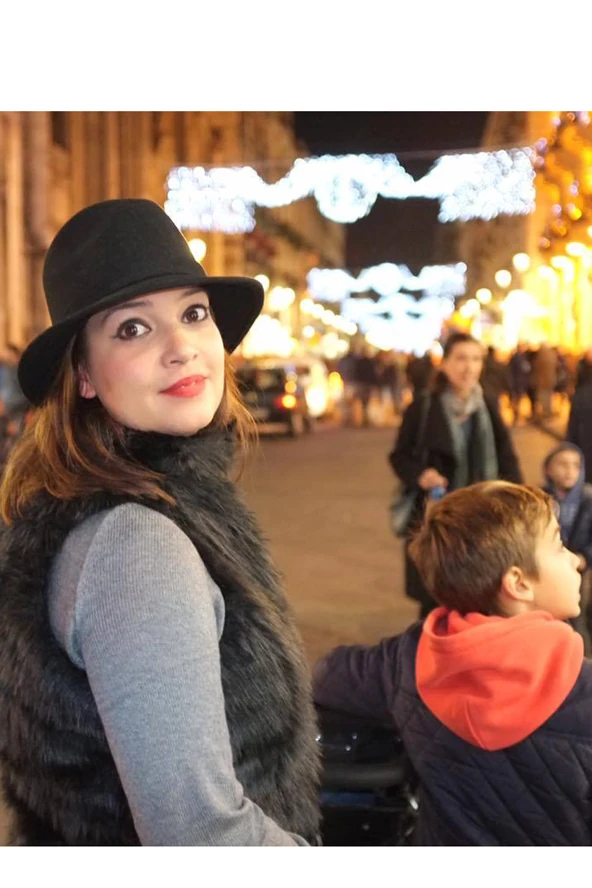 Mivel itt az iskola reggel 9-kor kezdődik, így sokszor elmegyünk este a gyerekekkel egyet "korzózni", akár hétköznap is. Ma este is, Artúr vízilabda edzése után, sétáltunk egyet a belvárosban. Az idő elég változékony, így napközben sokszor 17-20 fok is van még télen is, estére azonban sokszor lehűl, így a gyerekeket is melegebben öltöztettem, és én is magamra öltöttem a műszőrme mellényemet. Nagyon szeretem a fejfedőket, nyáron szinte egyfolytában hordok kalapot, és ebből is van egy barna verzióm is.