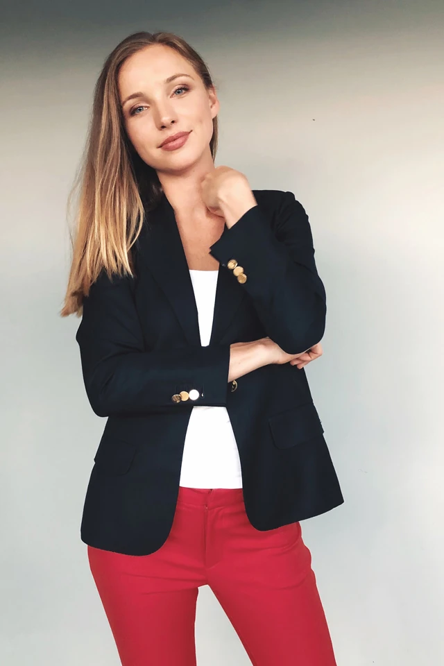 Szabad péntek estére Luan by Lucia jolly joker szuper 120-as gyapjú, kézzel varrott klubzakóját választottam. Egyszerre sportos, de elegáns is, amit kifejezetten kedvelek.