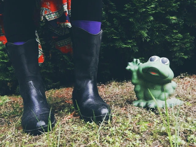 Hazajöttem a szüleimhez, ahol ilyen vicces dolgokat találni a kertben. Ez a hajnali, kávézgatós outfitem.