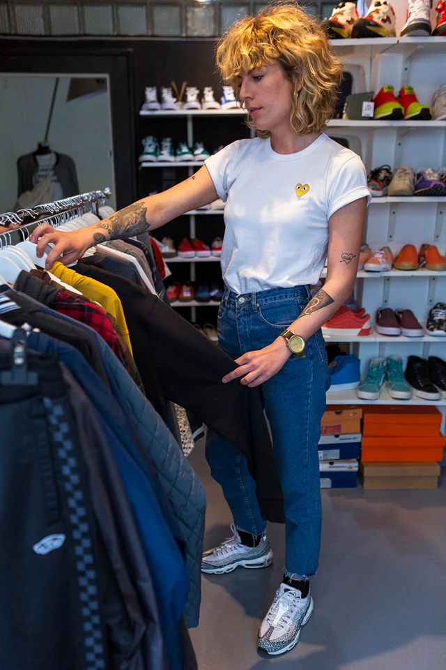 Farkas Dóra kicsivel több mint egy éve nyittotta meg boltját, a JUDAS-t a Madách tér közepén. Az üzletben stílusosan keverednek a vintage és a streetwear ruhák, ami Dóra stílusát is jellemzi.