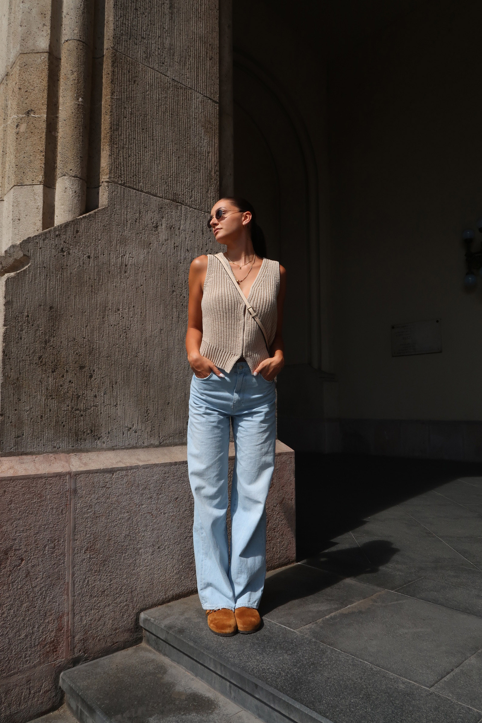 Talán valami ilyesmire céloztam amikor a retro szót említettem. Számomra ez a mellény és papucs összeállítás ezt juttatja eszembe. Egy barátnős délutánhoz választottam most ezt a szettet. Nem igazán volt kedvem öltözködni és alapvetően is valami “felkaptam és indultam” stílust akartam belecsempész a megjelenésembe. Szerintem egészen jól sikerült és bár a papucs eléggé megosztó, én imádom!