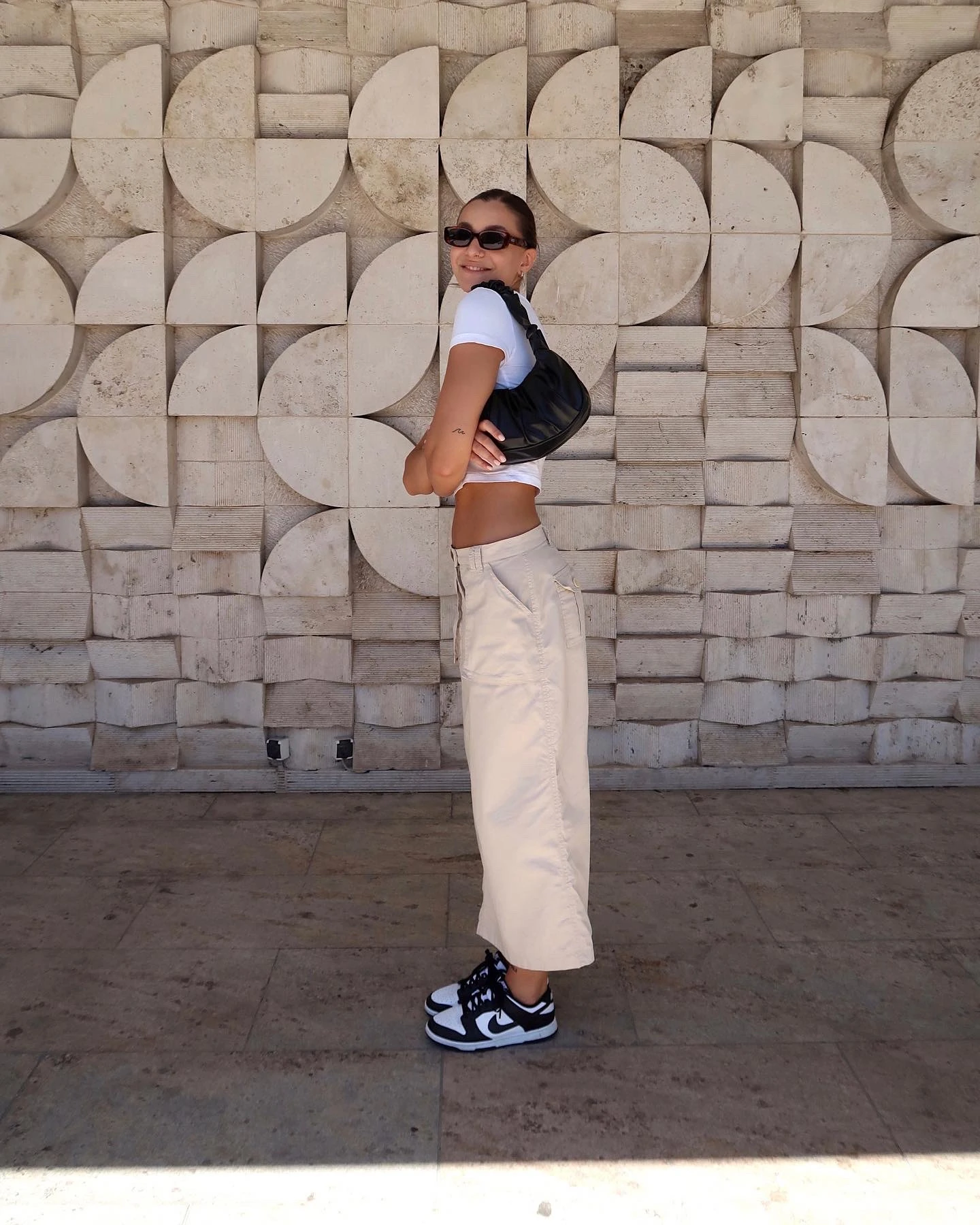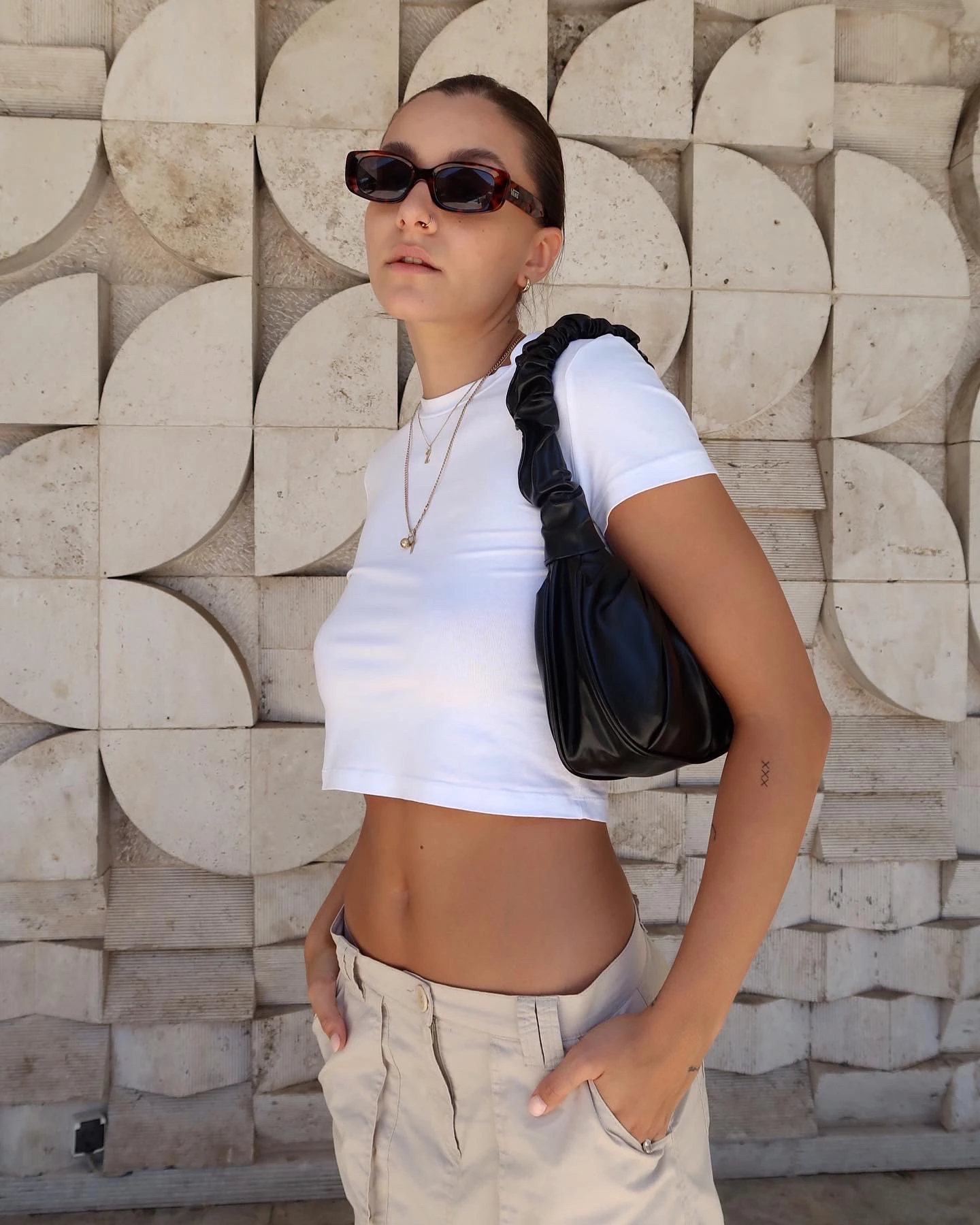 A bő nadrágok mellett, nálam a bő szoknyák is helyet kapnak. Imádom az ilyen és ehhez hasonló csípő darabokat. Egy lazább eseményre voltam hivatalos, amit aztán munka követett. Próbálom mindig megtalálni az arany középutat. Ha kicsit megmutatom a hasam, akkor mindenképpen lazább alsó részt választok és fordítva. Ettől érzem magamat igazán komfortosan. Mint az év minden szakaszában, nálam nyáron is óriási szerelem mindenféle sneaker. Egy részről azért, mert kényelmes. Más részről pedig óriási gyűjtője vagyok a cipőknek. Minden jöhet!