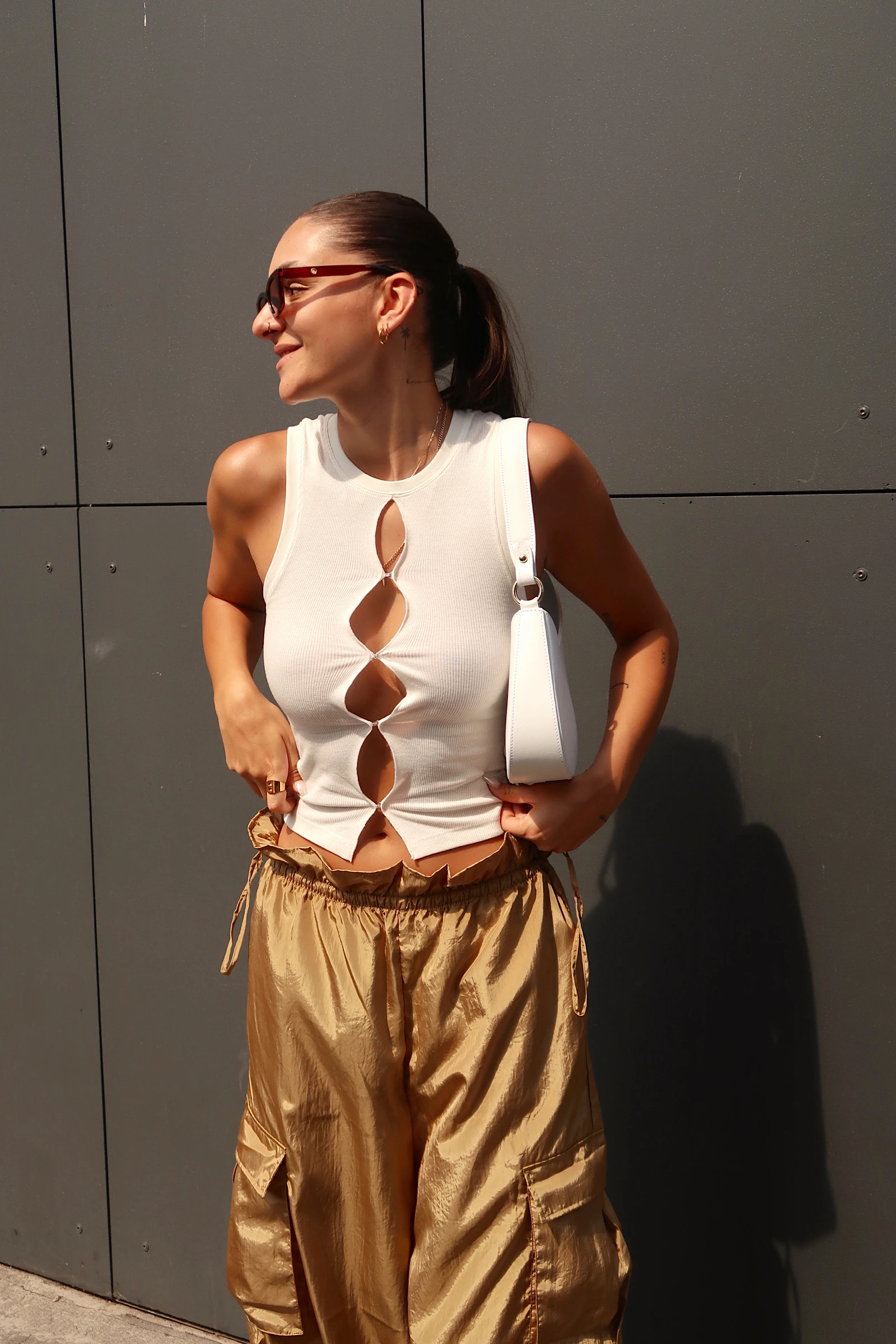 Egy igazán laza szett a mindennapokra, amikor csak rohangálok a városban. Talán az ilyen kombinációkat szeretem a legjobban! A bő nadrág és egy szűkebb felső, nálam mindig tuti befutók. Bár a szín nem teljesen vagyok én, de örülök hogy nyáron végre háttérbe szoríthatom a fekete szín mániámat. Az elmúlt időszakban teljesen elengedtem a szűk nadrágokat és szerintem ezzel egyre többen vannak így. Kényelmes, praktikus és újra menő