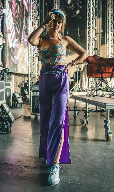 Ma lesz a Fishingen koncertünk a Pandóra Projekttel, és minden koncertet meghatározza, hogy komfortosan érezzem magam a fellépőruháimban, hiszen ez is ad egy magabiztosságot a színpadon. Mivel az egyik kedvenc fesztiválom a Fishing, a tavalyi Budapest Parkos koncertünkön viselt szettemet fogom felvenni, ami egy libbenős, oldalt felsliccelt lila selyem nadrág Dezső clothes-tól, és egy a zenekarunk arculatához passzoló rózsaszín kék barna fűző. A kendő és a színes ékszerek a színpadon is velem vannak mindig, csak néha vigyázni kell a sok nyakláncra, hogy ugrálás közben nehogy összegubancolódjanak. Ez a könnyű nadrág nagyon látványos a színpadon, mert viszi a szél és emellett extra kényelmes. Találkozzunk este a koncerten Fishing on orfű 19:00 Borfalu színpad, ebben a szettben biztosan minden jól fog alakulni.
