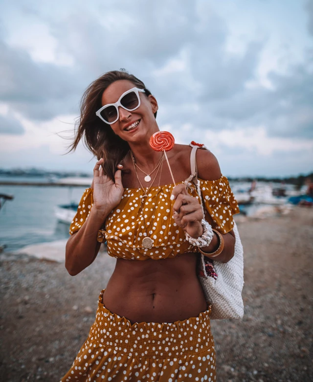 Minden jöhet, ami pöttyös! A mai outfittem tökéletesen alkalmas egy forró nyári esti sétához, mert olyan kis könnyed és libbenős. Vacsihoz csak azoknak ajánlom, akik kibírják, hogy 3 falatot esznek, különben egyből jönnek oda gratulálni az új jövevényhez...