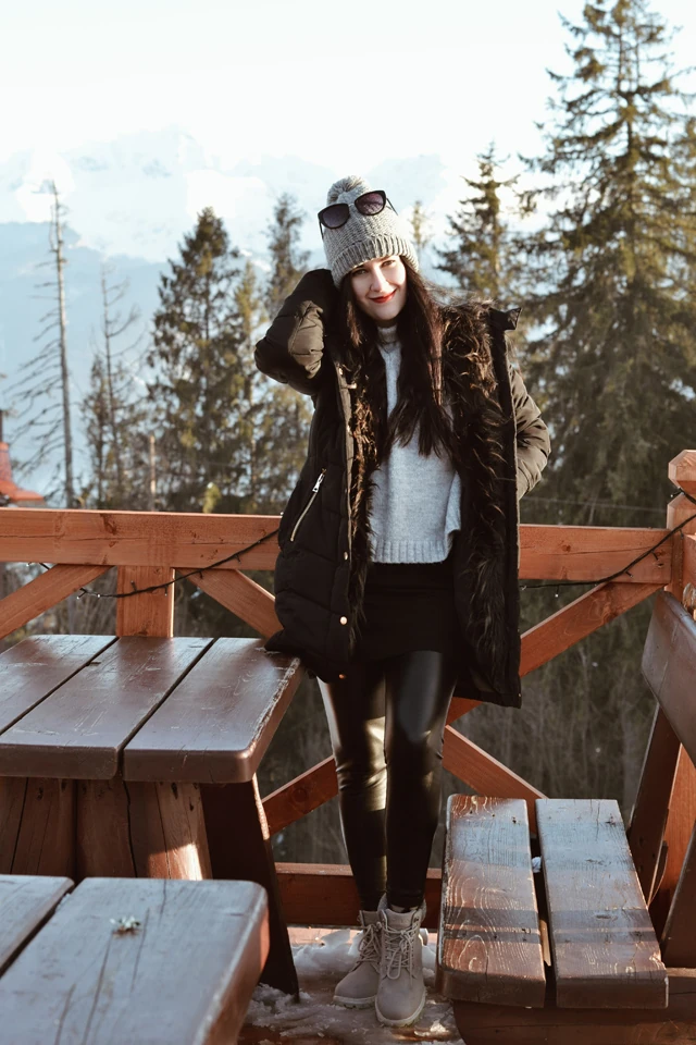 Tegnap estére Zakopaneba értünk és a mai nap első megállója Gubalowka hegy kilátója volt, ahova egyik kedvenc meleg pulcsimat vettem fel. Ezt fekete, belül termo melegítéssel ellátott bőrnacimmal párosítottam. A kedvenc téli cipőmet is viselhettem végre, amit azért is nagyon szeretek, mert a jeges utakat is bátrán megjárom benne.