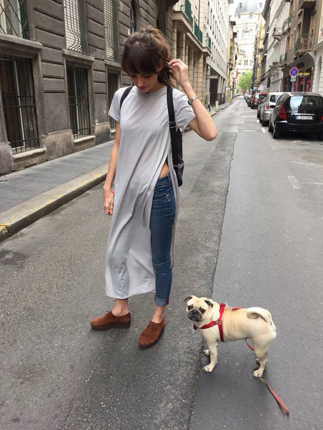 Ma nekem nincs munkaszünet, igaz csak emailekre válaszolok és képeket válogatok a legutóbbi két fotózás anyagaiból. Emellett hamarosan pop up store-t nyitok és arra is készülődünk. Egy hosszú pólóruhát választottam, farmernadrággal és egy vintage farmerdzsekivel, ami egy igazi örökség, az egyik legjobb barátom édesanyjáé. Mivel ma nem rohanok sokat, megpróbálom átvészelni a napot egy magas talpú hasított bőr cipőben, hogy bírja-e a nemrég sérült bokám:)