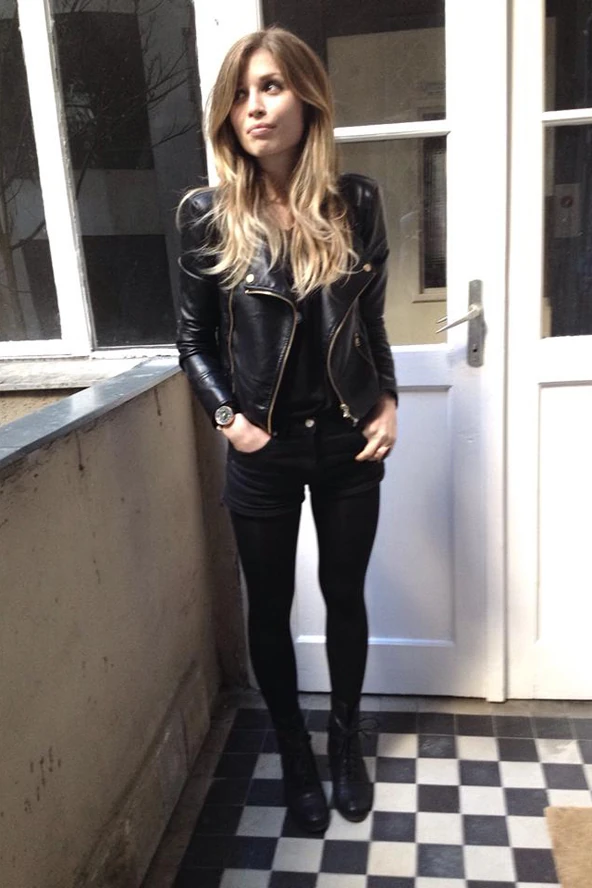 Egy PR kommunikációs ügynökségnél dolgozom, munka után pedig majdnem minden nap zenével foglalkozom, ezért ha ruhát választok reggel fontos a kényelem. Kedvelem a fekete vastag harisnya - magas derekú sort párosítást, hozzá pedig magasszárú bakancsot vagy bokacsizmát hordok. Kabát- és dzsekimániám van, az egyik kedvenc dzsekimet ma is felvettem. Helló, hosszú nap.