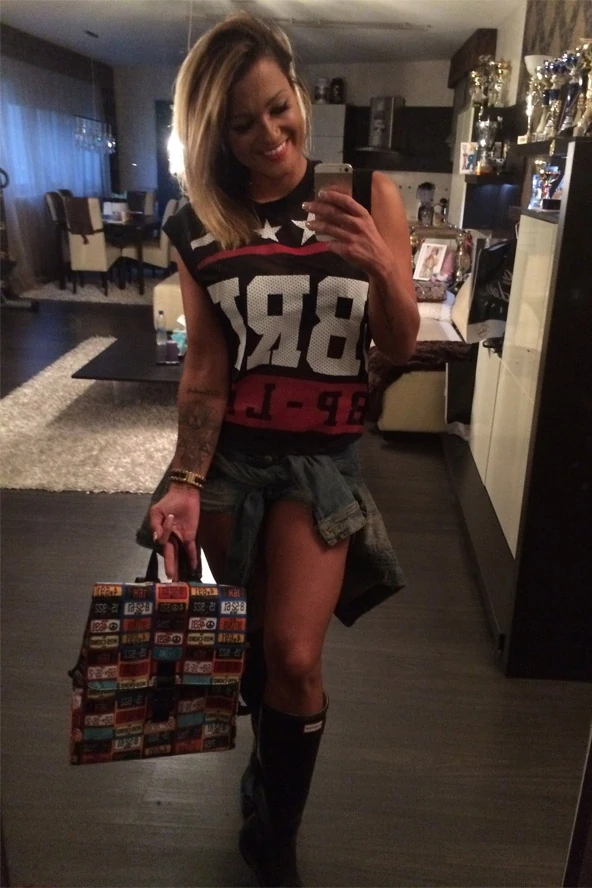 A hétfő délelőttöm mindig rohangálós, így kényelmes darabokat választok, mint például ma, farmersortot, lazább pólóval és gumicsizmával. A hátizsák a legpraktikusabb számomra ezeken a napokon. Edzéstartás közben minimális smink van csak rajtam, viszont a szabadnapjaimon szeretem a színes rúzsokat.