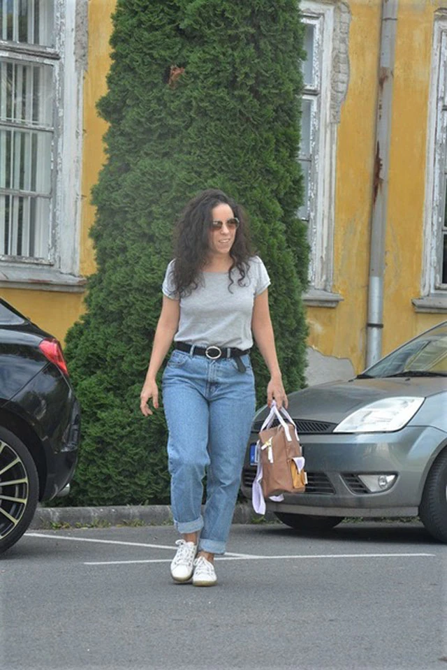 Ha éppen nem az irodában dolgozom, akkor minden időmet a család és a webshop tölti ki. Kisgyerekes anyaként a reggeli kapkodás nem ritka nálunk sem és bizony van, hogy otthon marad a balett ruha vagy az ovis táska. Az ilyen rohanós reggeleken mindig farmert választok, kényelmes sportcipővel és pólóval.