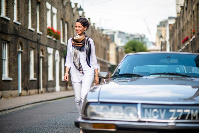 Ma a legjobb kültéri helyszínt kerestem London utcáin barangolva, mert a hét második felében az új kendő kollekciómat fogjuk fotózni. Ehhez egy nagyon kényelmes A-vonalú inget, farmernadrágot és kivételesen lapos cipőt választottam. A `Sky is the limit` kendő pedig jó példa arra, hogy egy nagyon egyszerű megjelenést milyen könnyen feldobhatunk egy jól megválasztott kiegészítővel.